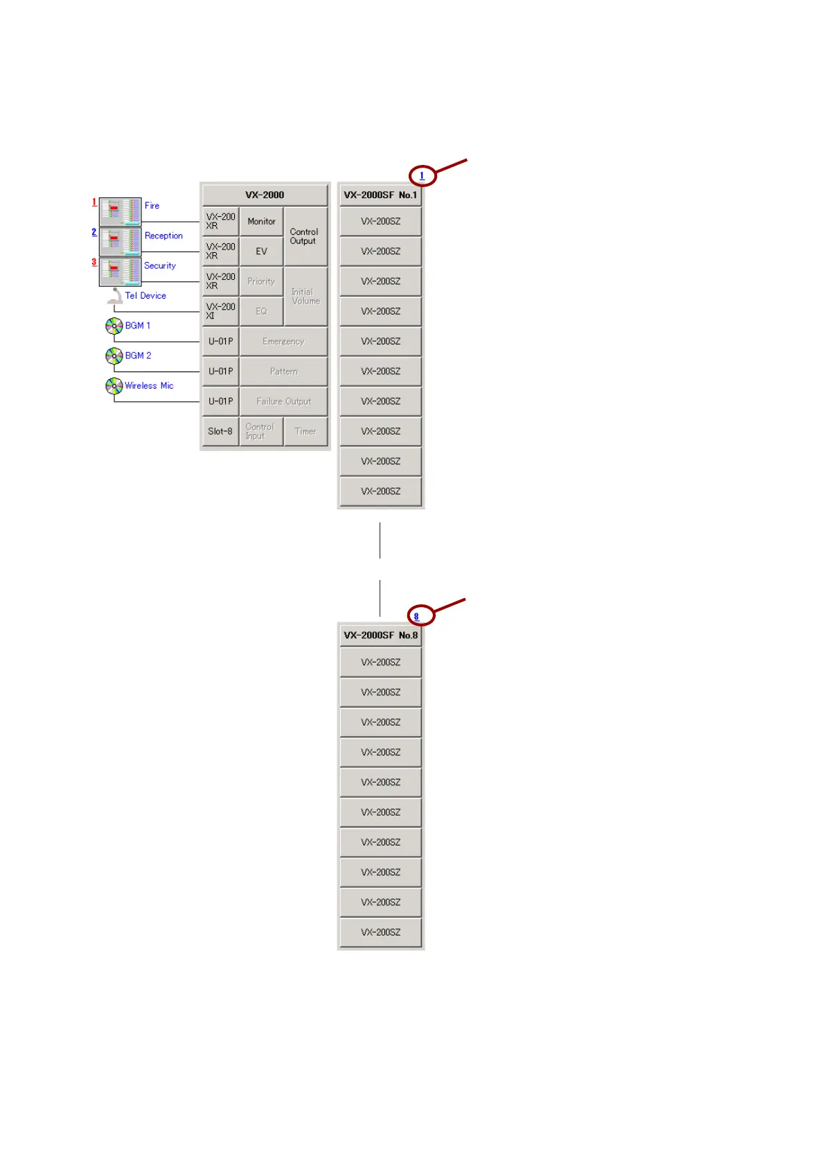 each VX-2000SF symbol indicates the Unit