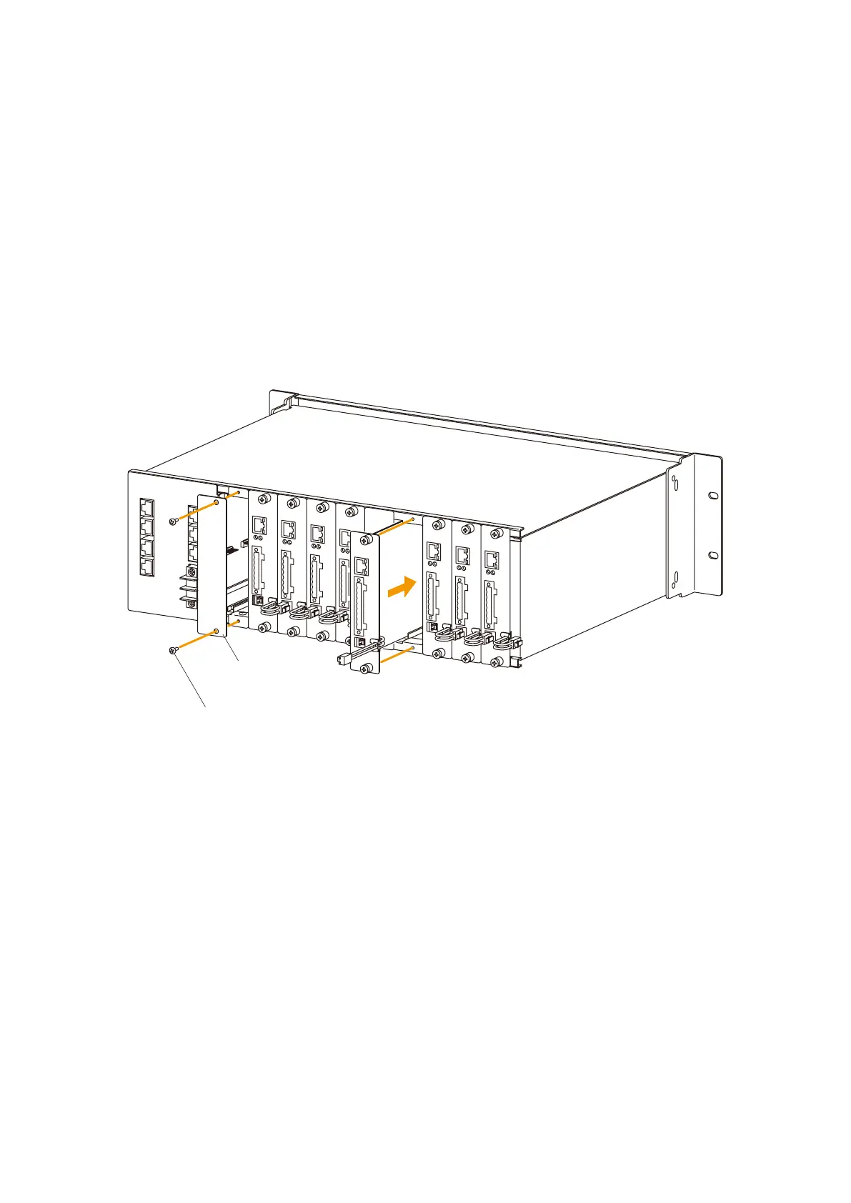 Step 1. Align the module with the rails inside the VX-2000SF Frame, then push the module in to plug its