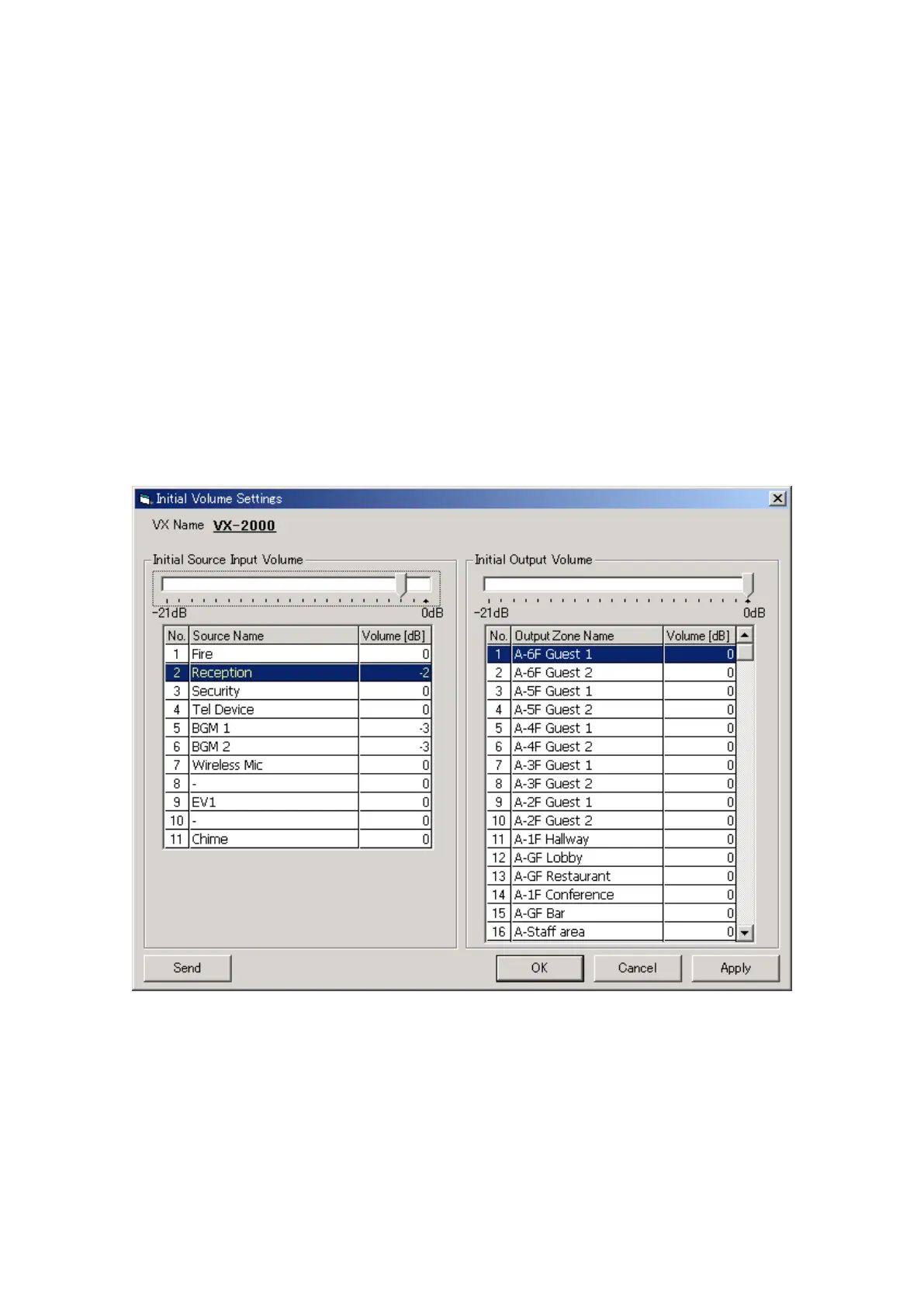 Step 3. Click on the [Send] button and transmit the set value to the VX-2000.