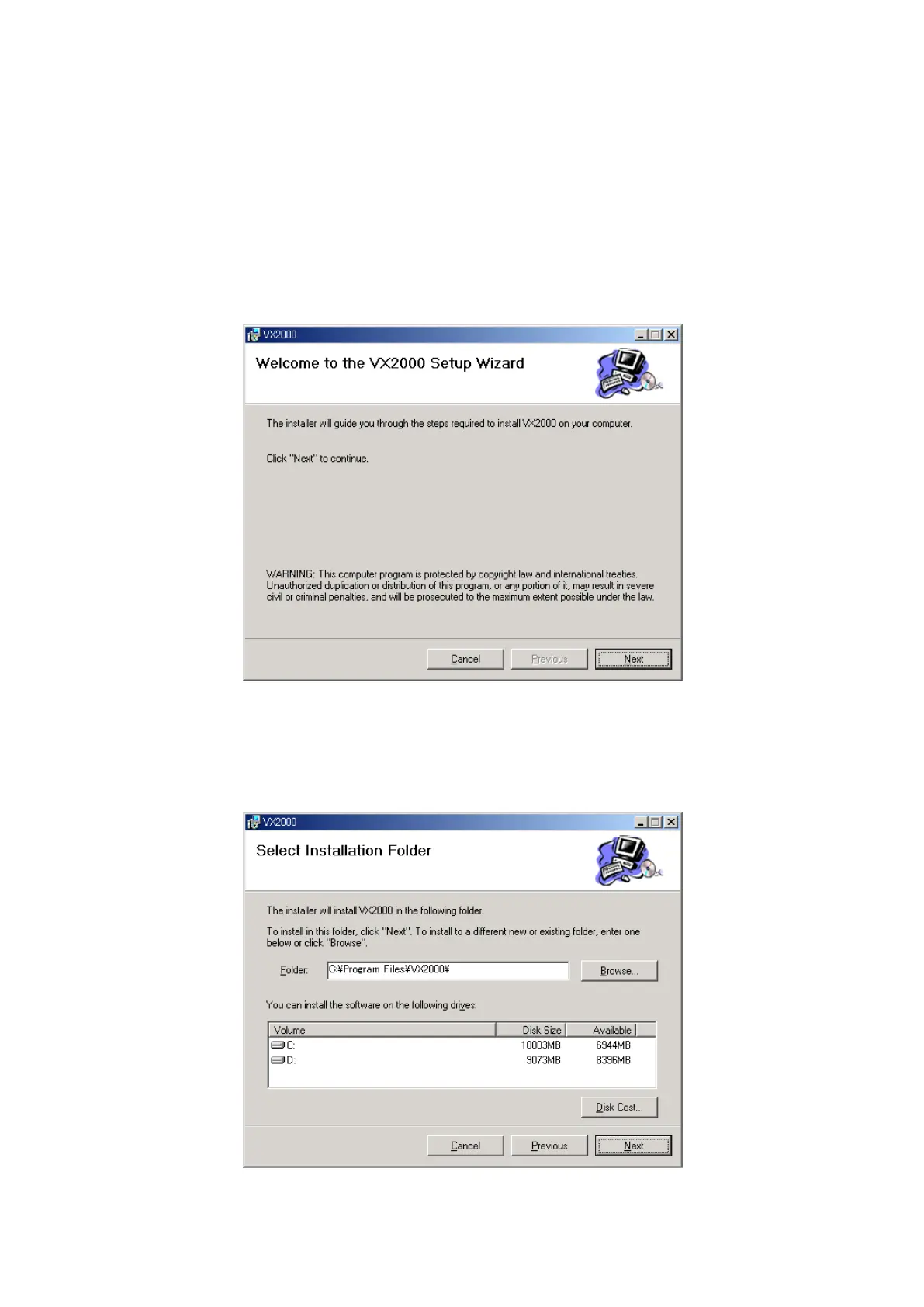 Install the VX-2000 software following the procedure below.