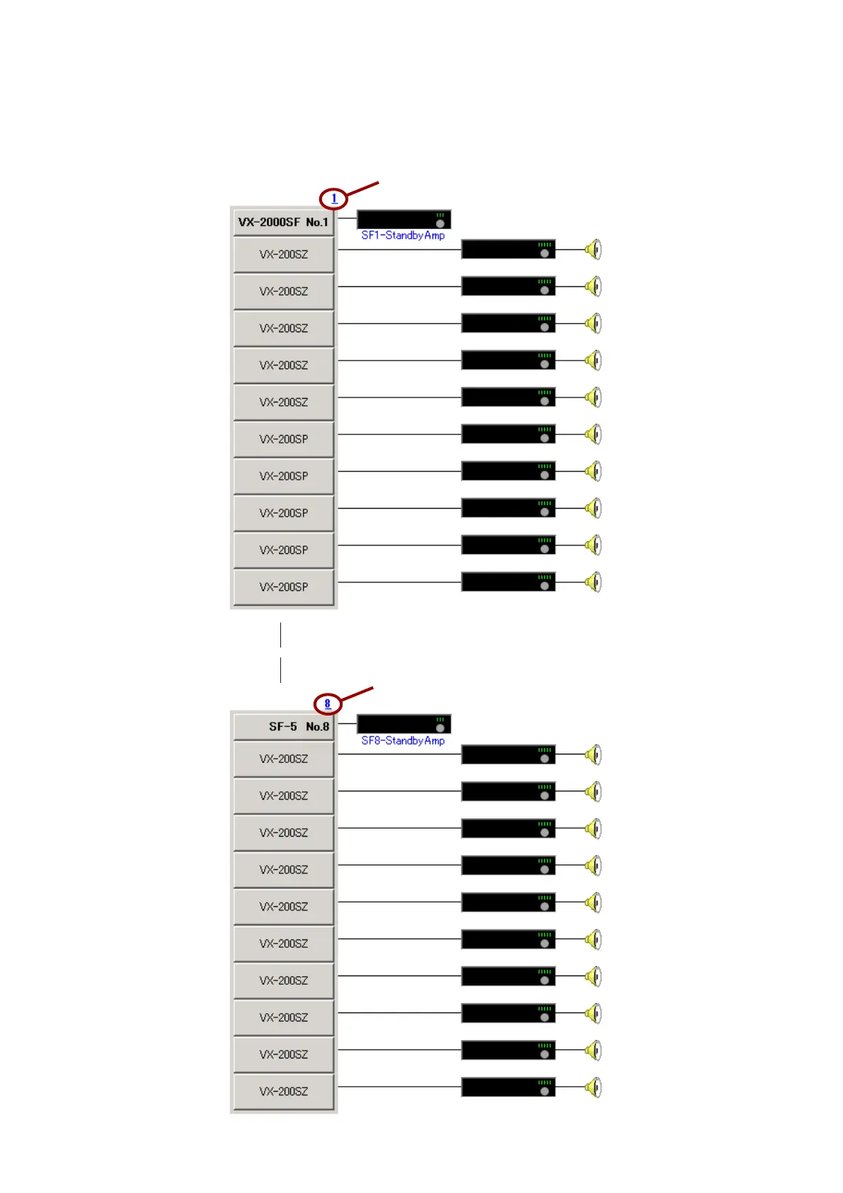 The number on the right-hand side above each VX-2000SF symbol indicates the Unit ID number. Be sure to
