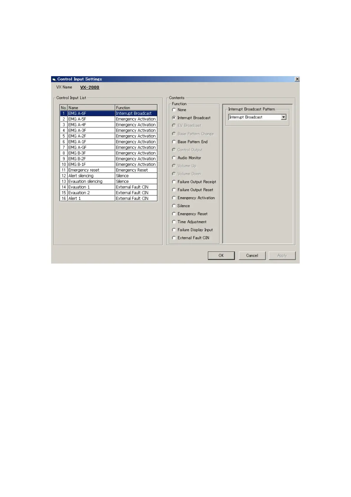 Clicking the [Control Input] button on the Configuration screen opens the [Control Input Settings] window. The