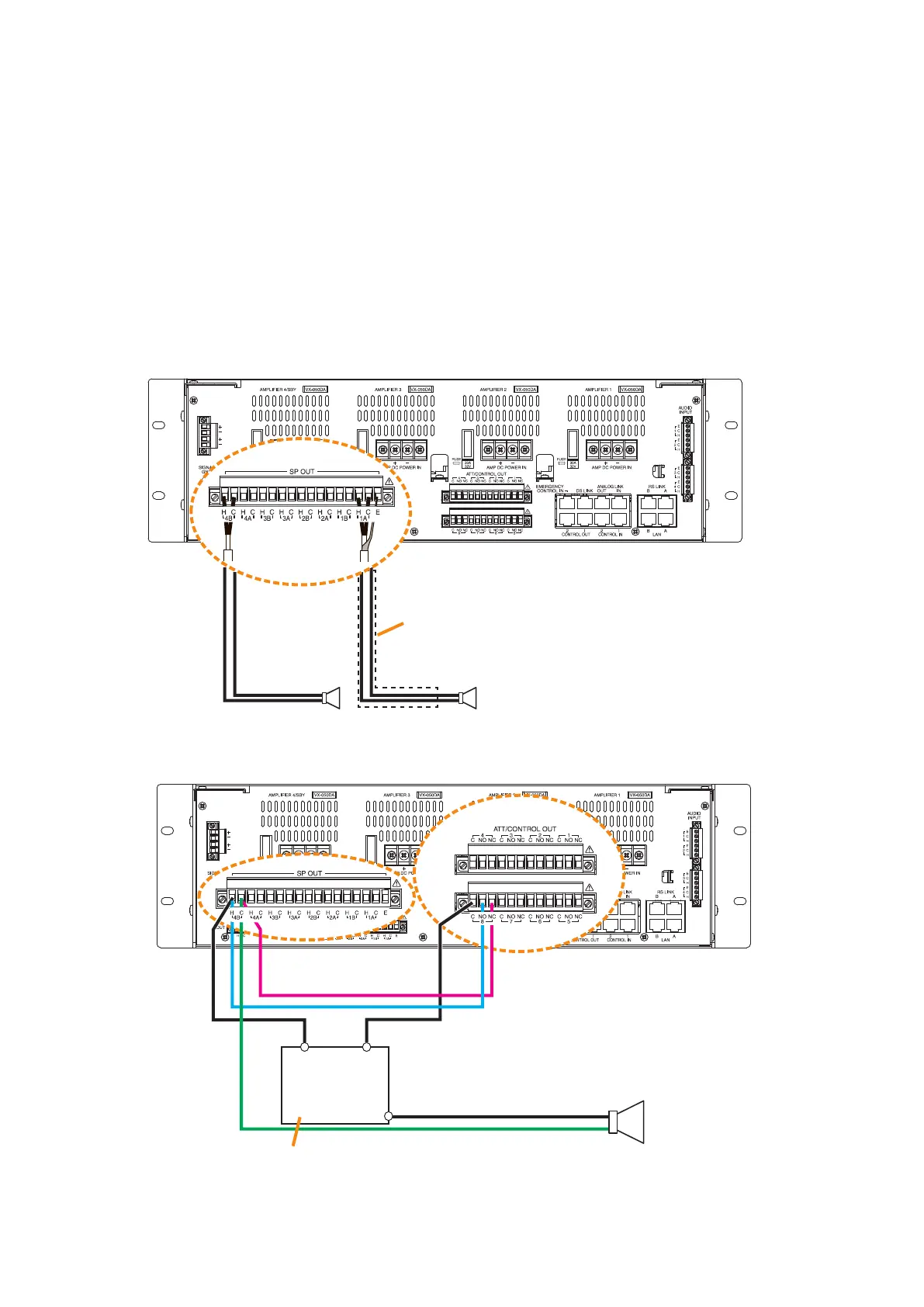 When initializing the surveillance settings, the total speaker wattage per line should be 20 W (500 Ω) or more.
