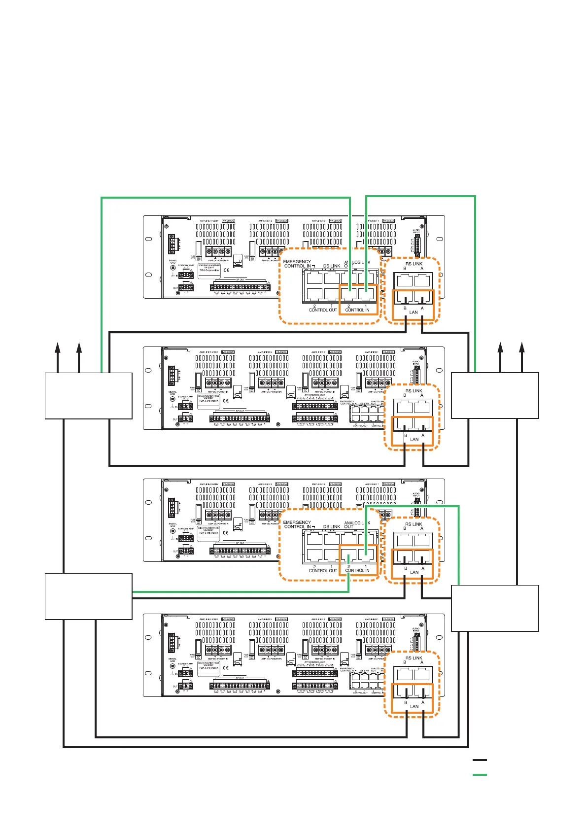 In the connection example below, the LAN Link A and B connectors of each VX-3000F are individually connected