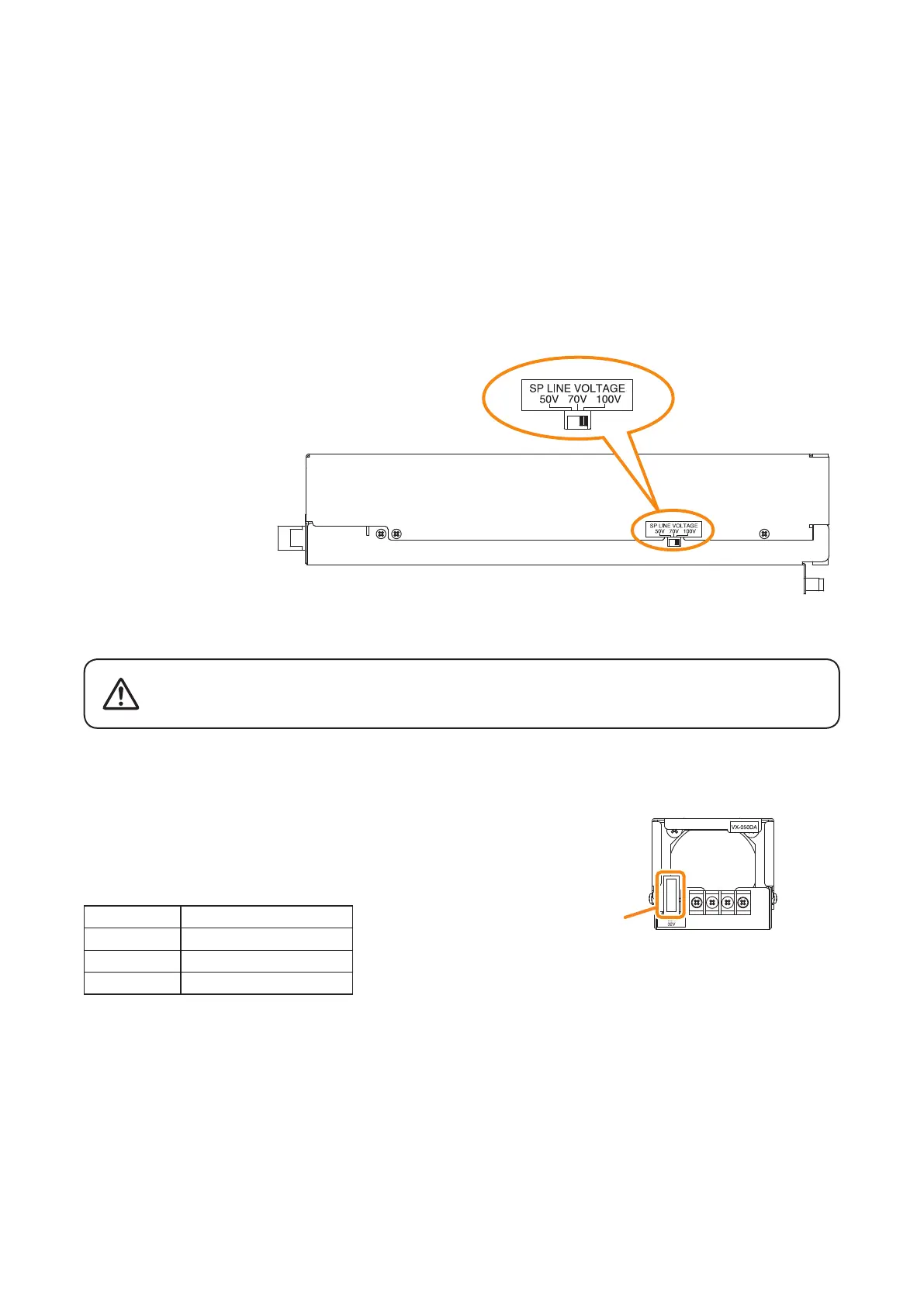 Though the speaker line voltage of the VX-015DA, VX-030DA, and VX-050DA is factory-preset to 100 V, you