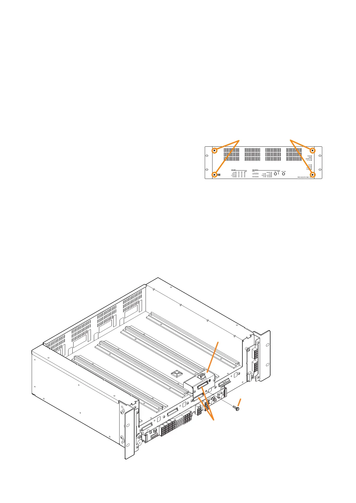 Insert the line output module along the supporting runner, then secure it using a screw supplied with
