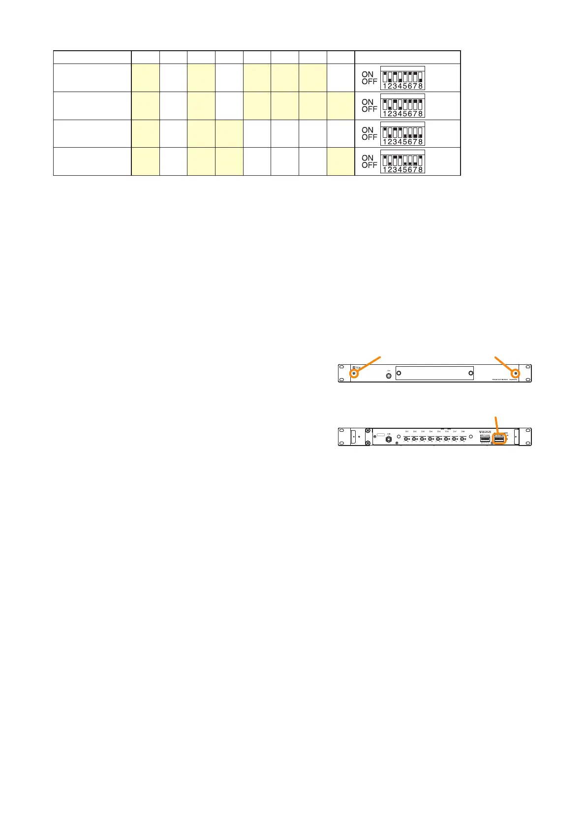 • Placing Switch 1 in the OFF position disables the settings performed using Switches 2 through 8.