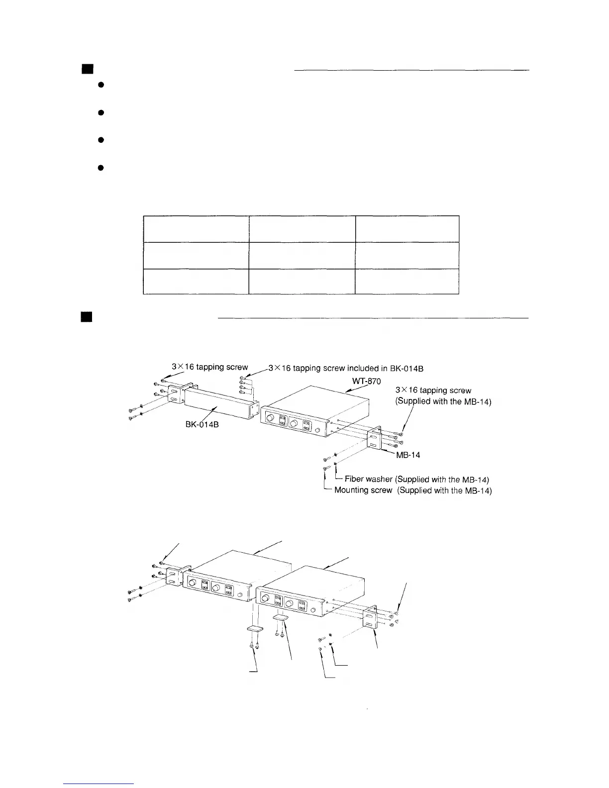 2. Mounting two units in a rack. (Optional mounting kits MB-14 and J-700 are to be used.)