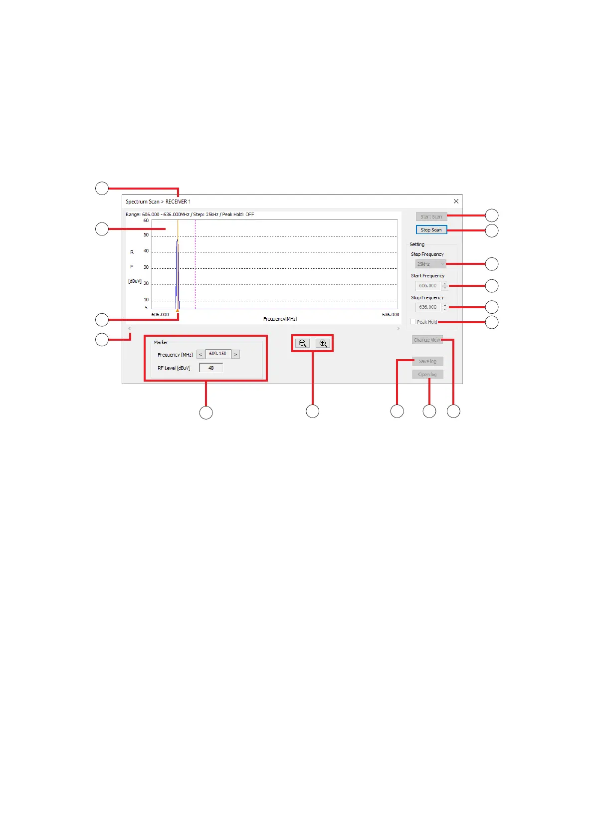The Spectrum Scan function checks the strength of radio wave in the specied frequency range and displays