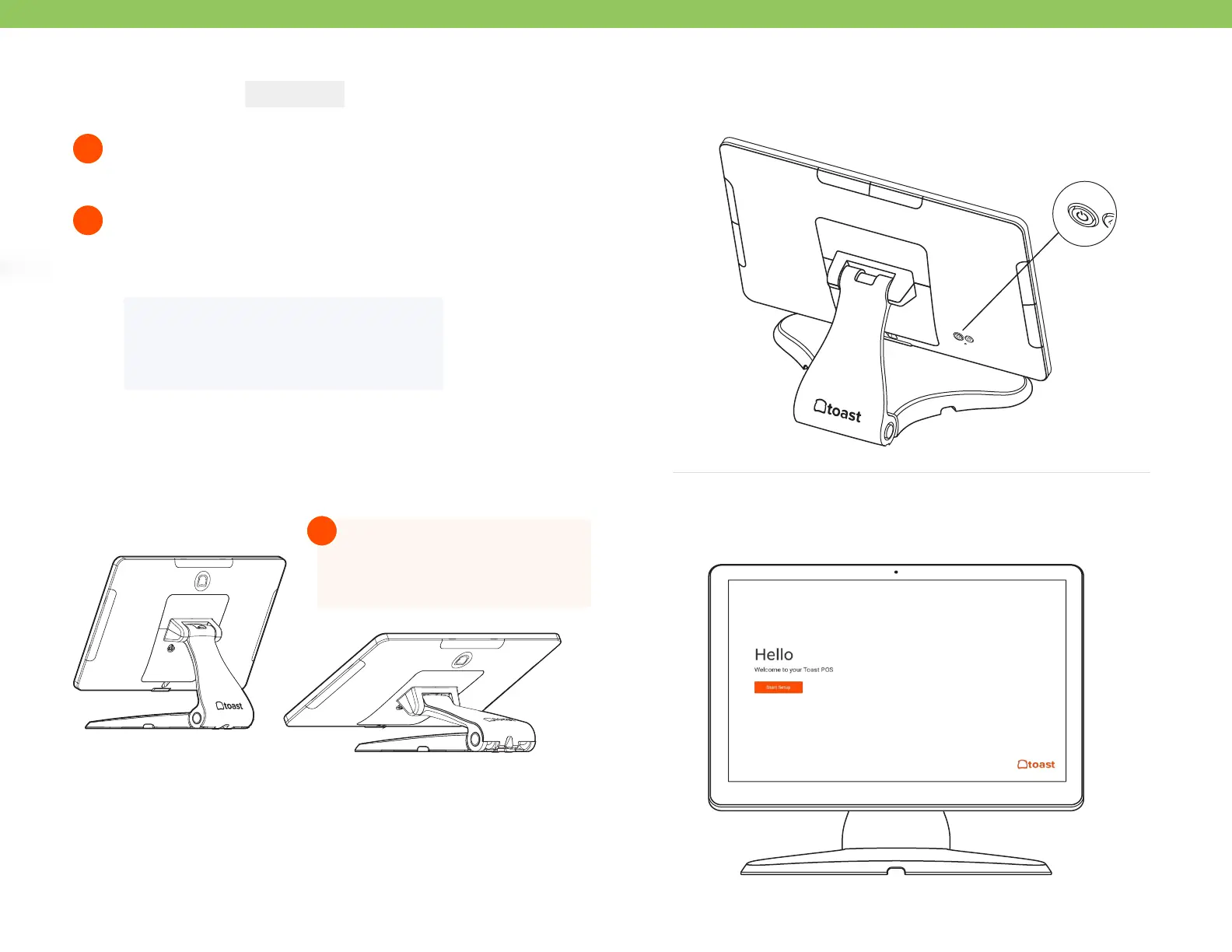 Power on the Toast Flex and follow the Toast setup