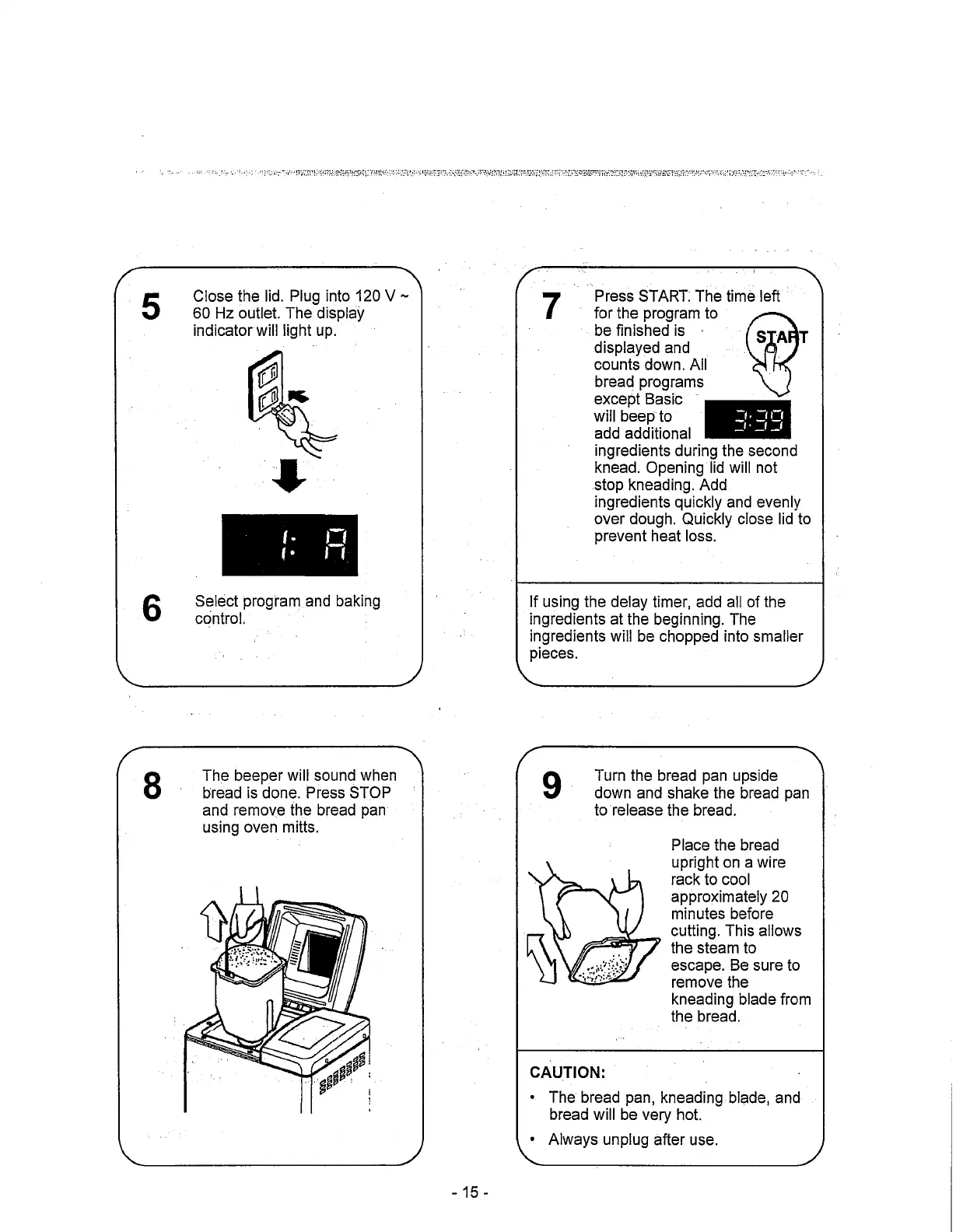 Toastmaster 1187S - Programming Bread or Dough (Cont.); Step 5-7: Starting the Program; Step 8-9: Removing the Bread
