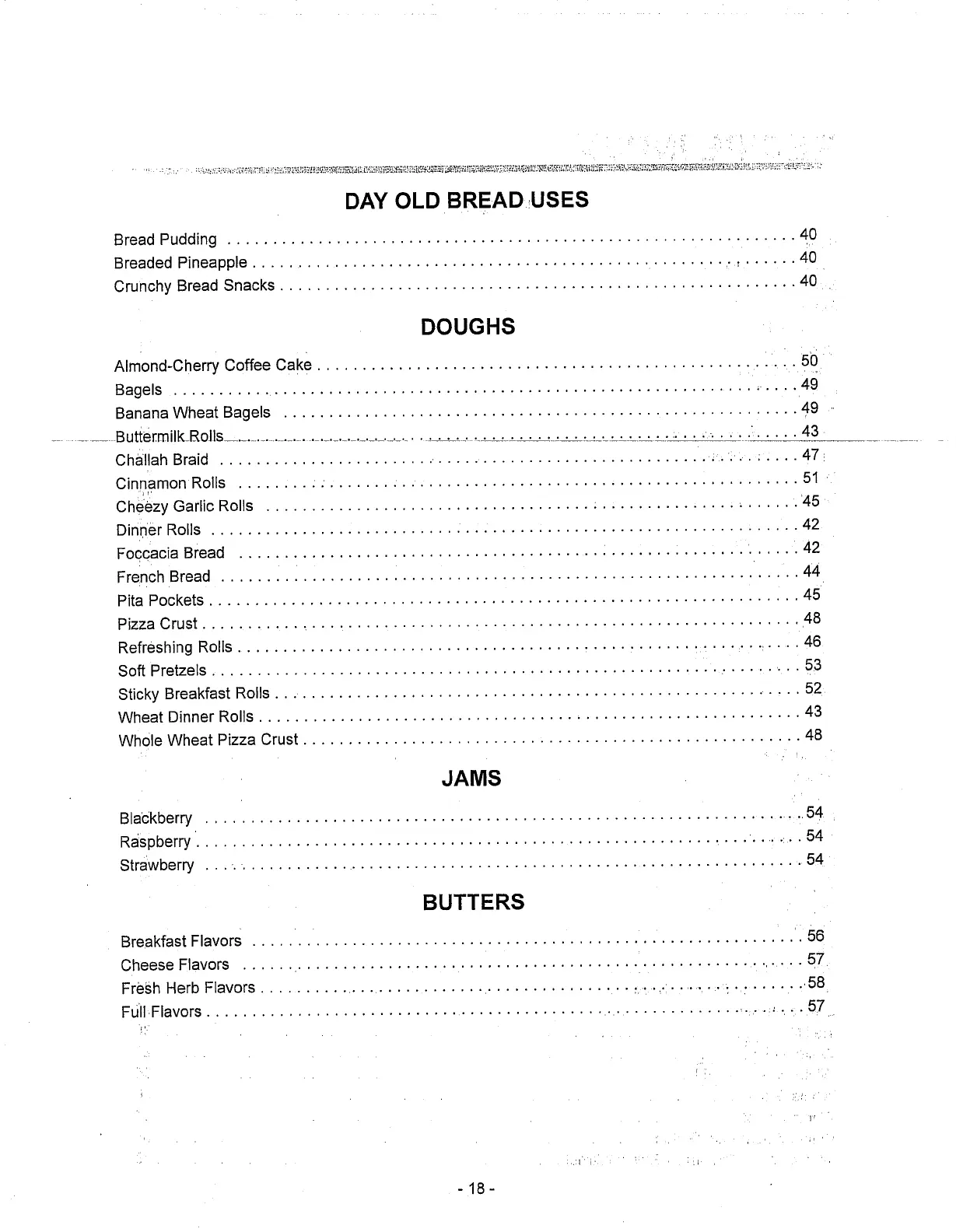 Toastmaster 1187S - Recipe Index (Cont.); Day Old Bread Uses; Doughs, Jams, and Butters