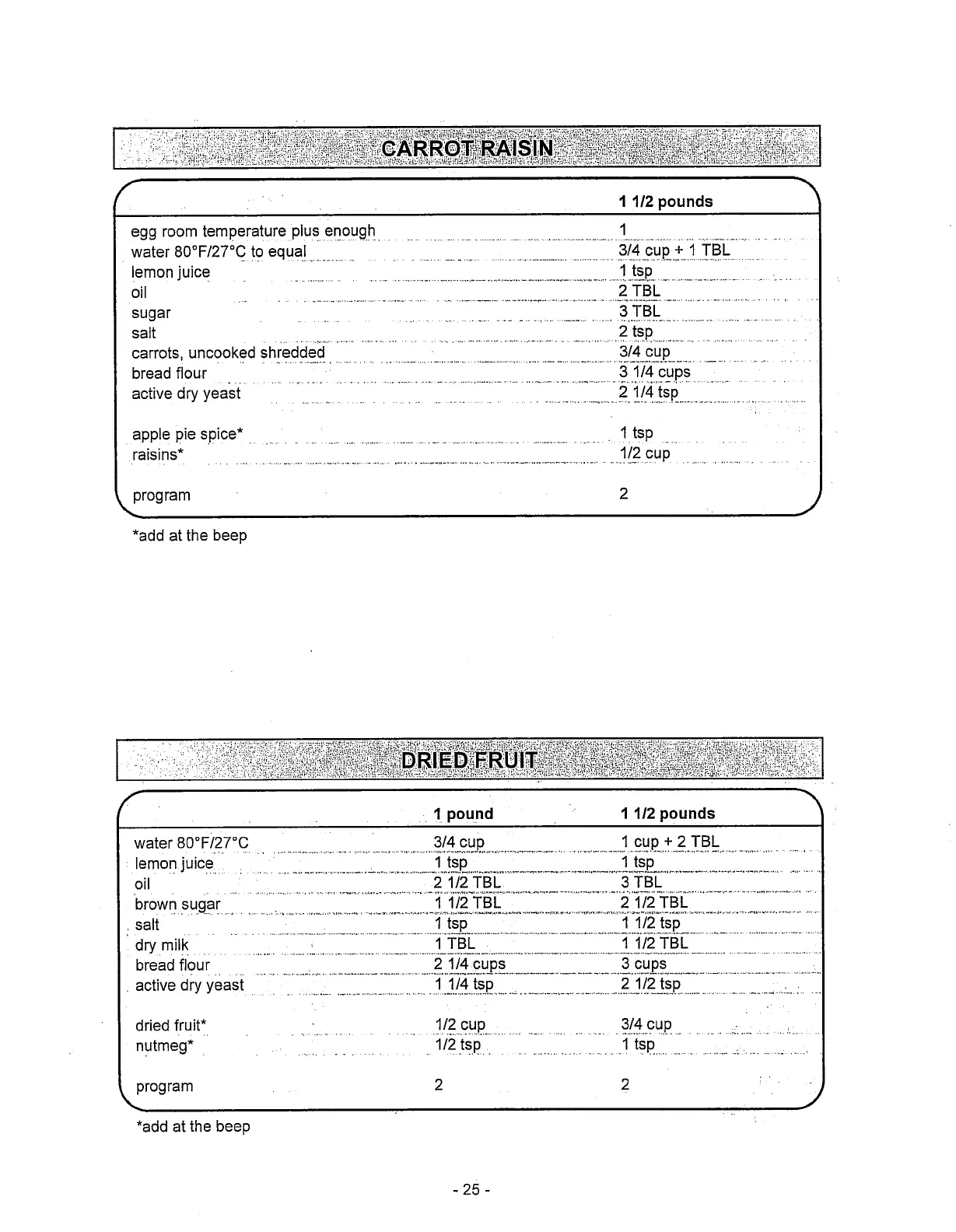 Toastmaster 1187S - Bread Recipes: Carrot Raisin & Dried Fruit; Carrot Raisin Bread Recipe; Dried Fruit Bread Recipe