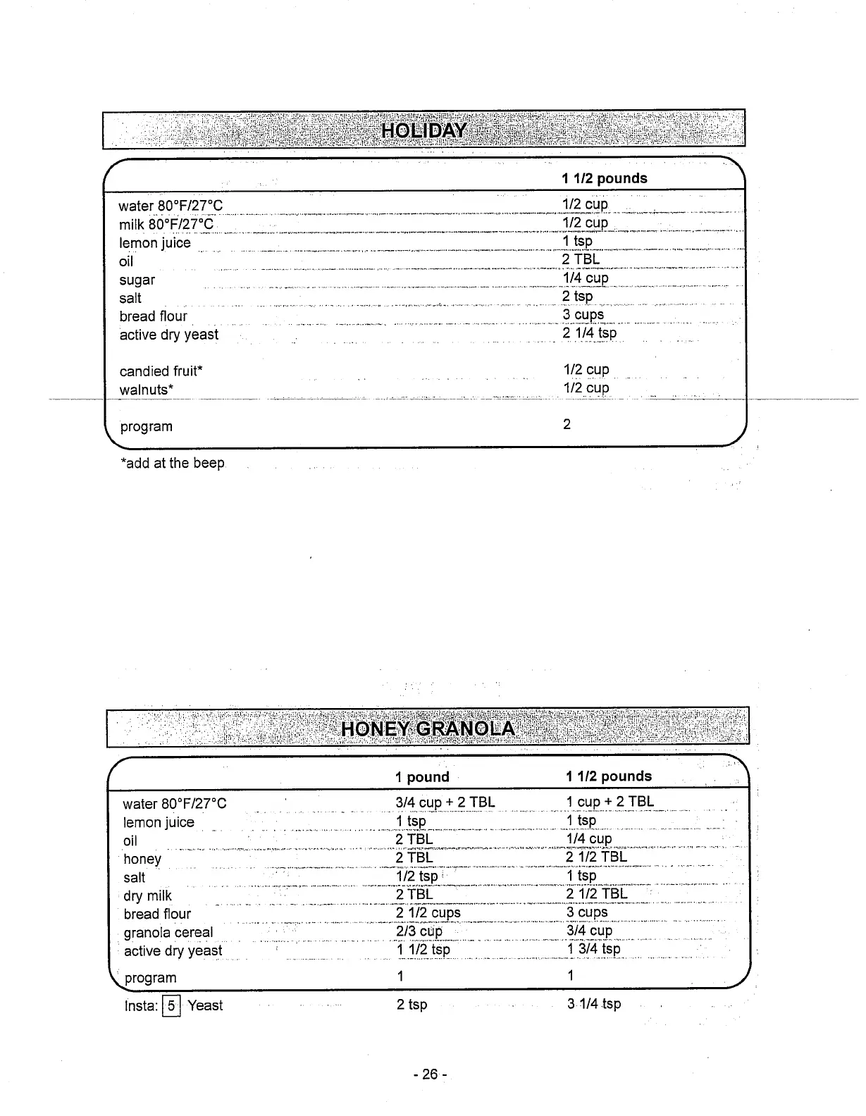 Toastmaster 1187S - Bread Recipes: Holiday & Honey Granola; Holiday Bread Recipe; Honey Granola Bread Recipe