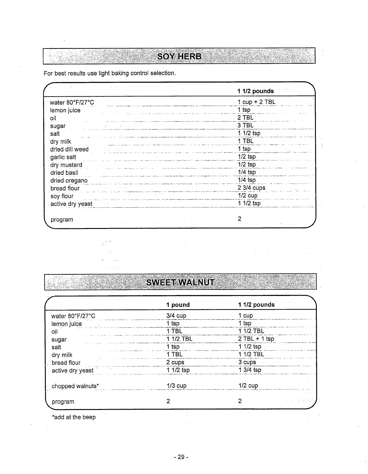 Toastmaster 1187S - Bread Recipes: Soy Herb & Sweet Walnut; Soy Herb Bread Recipe; Sweet Walnut Bread Recipe