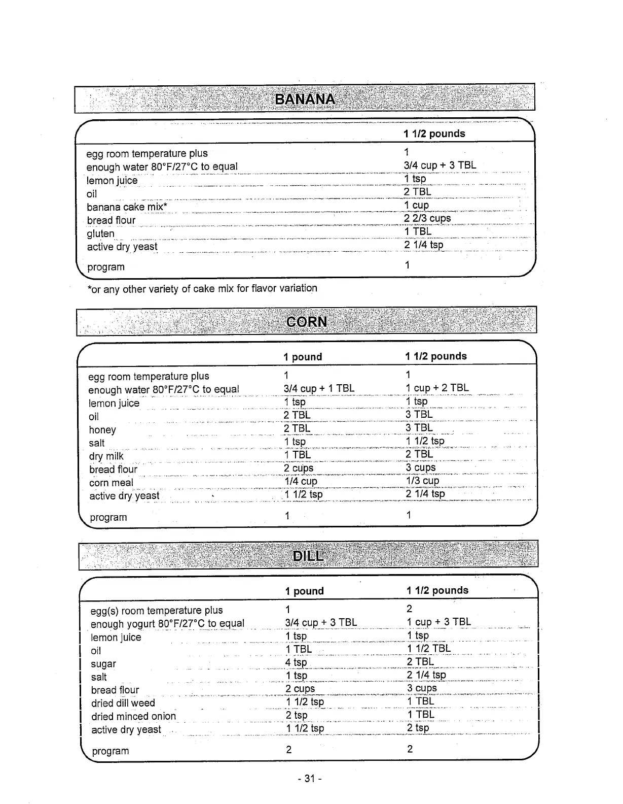 Toastmaster 1187S - Bread Recipes: Banana, Corn & Dill; Banana Bread Recipe; Corn Bread Recipe; Dill Bread Recipe