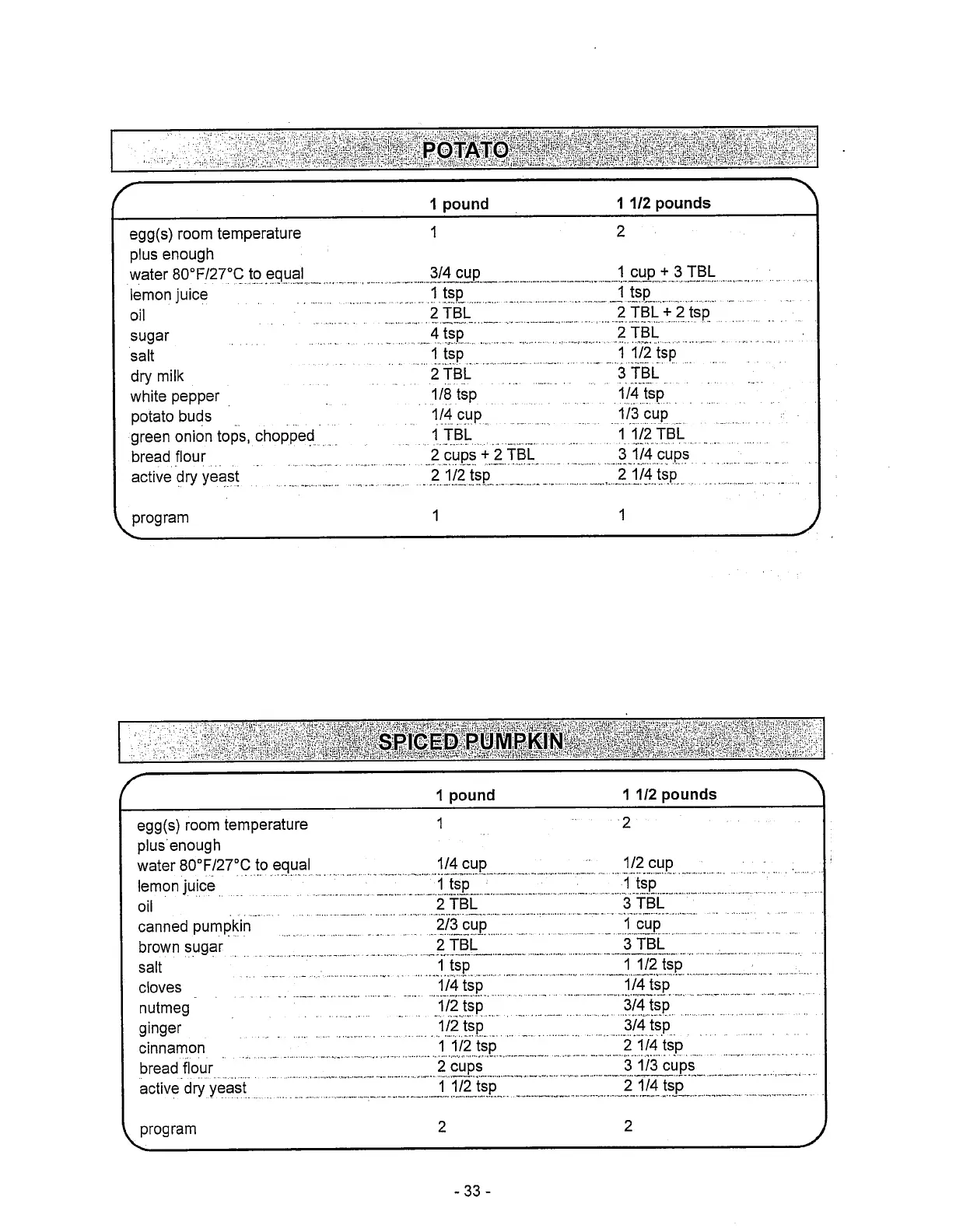 Toastmaster 1187S - Bread Recipes: Potato & Spiced Pumpkin; Potato Bread Recipe; Spiced Pumpkin Bread Recipe