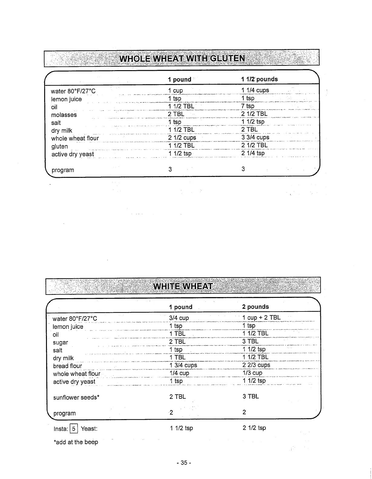 Toastmaster 1187S - Bread Recipes: Whole Wheat With Gluten & White Wheat; Whole Wheat With Gluten Bread Recipe; White Wheat Bread Recipe