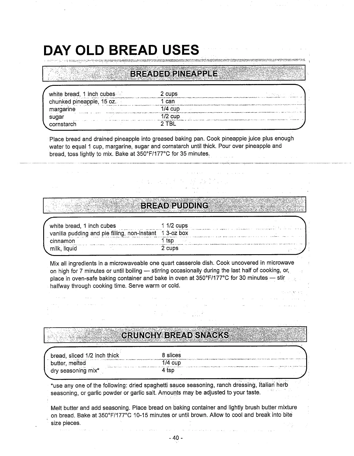 Toastmaster 1187S - Day Old Bread Uses; Breaded Pineapple Recipe; Bread Pudding Recipe; Crunchy Bread Snacks Recipe
