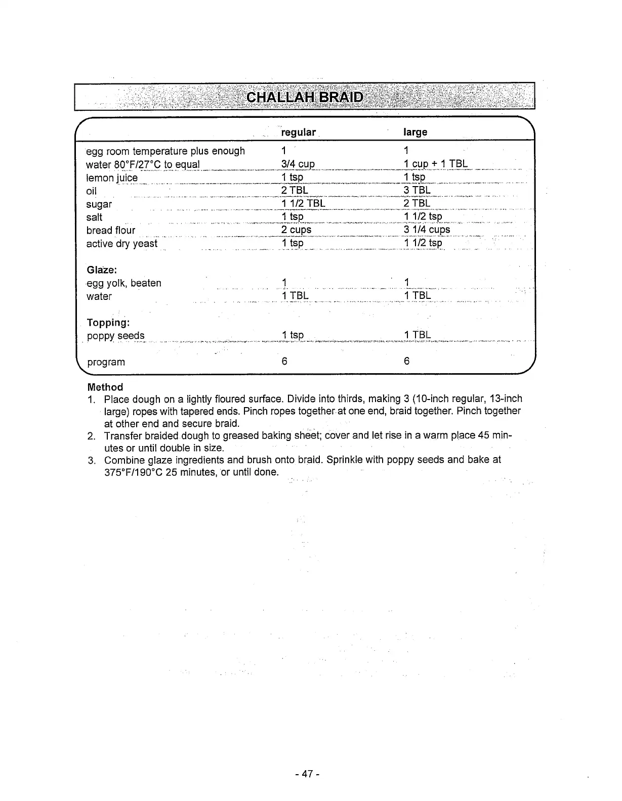 Toastmaster 1187S - Dough Recipe: Challah Braid; Challah Braid Preparation
