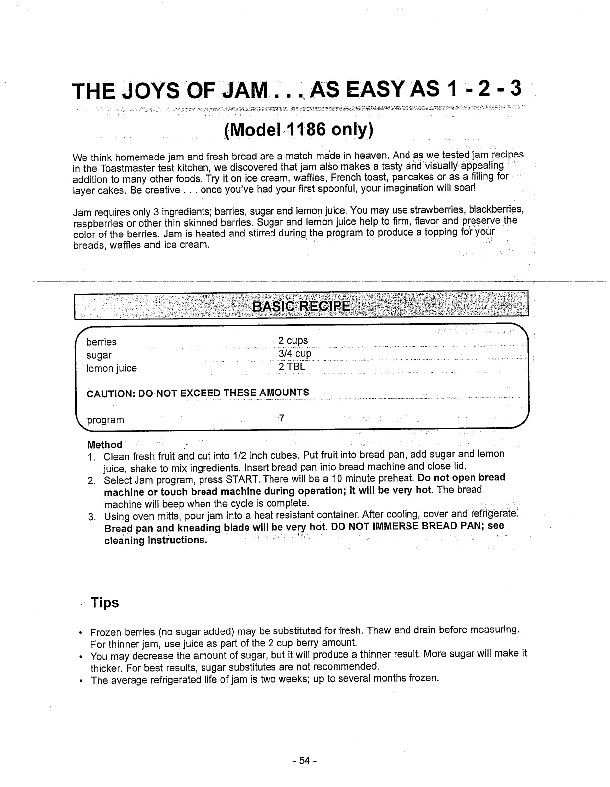 Toastmaster 1187S - The Joys of Jam... As Easy As 1-2-3; Basic Jam Recipe; Jam Making Tips