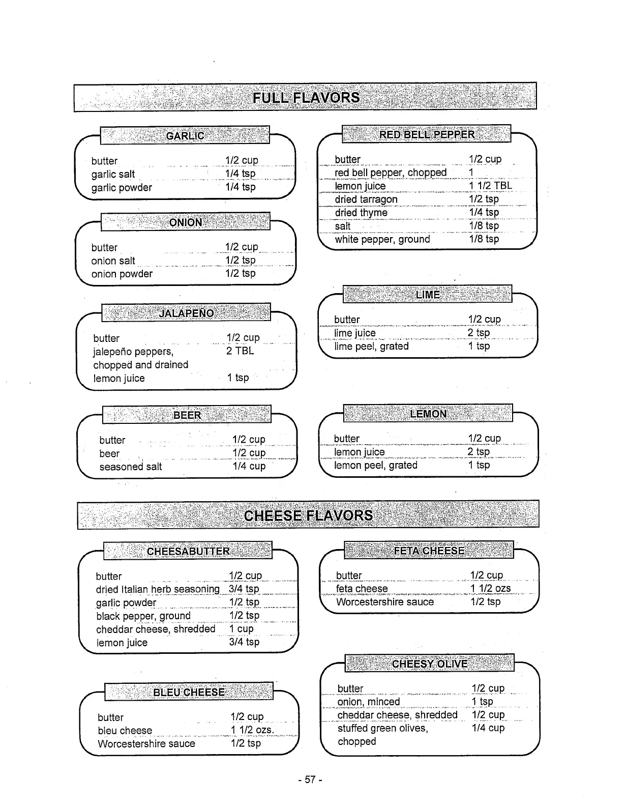 Toastmaster 1187S - Flavored Butters (Cont.); Full Flavors; Cheese Flavors
