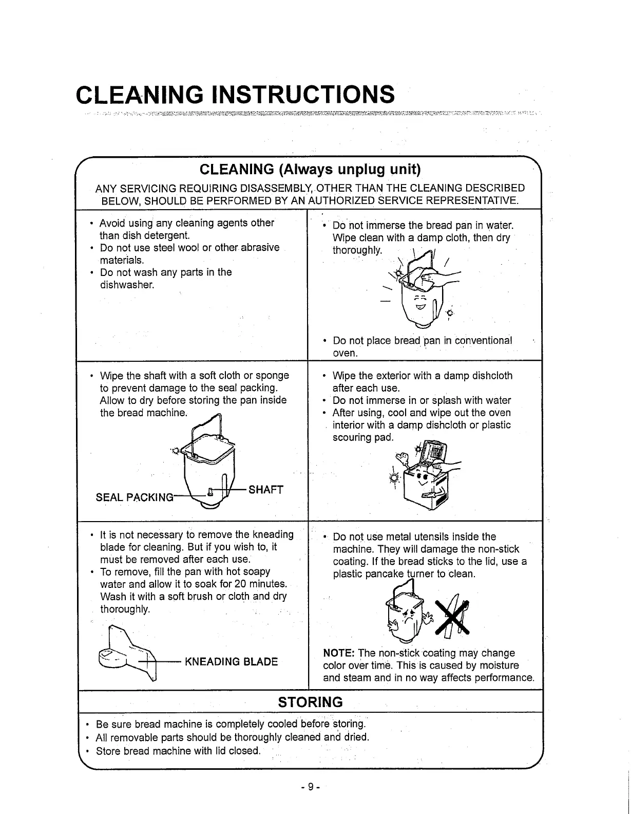 Toastmaster 1187S - Cleaning Instructions; Cleaning Procedures; Storing the Bread Machine