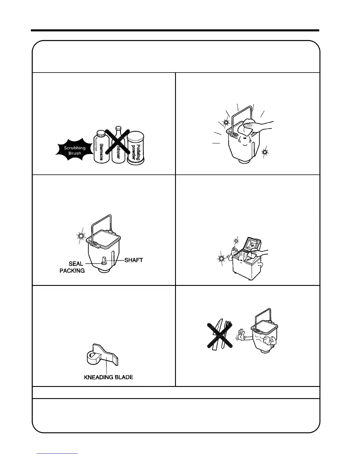 • Do not immerse the bread pan in water. Wipe