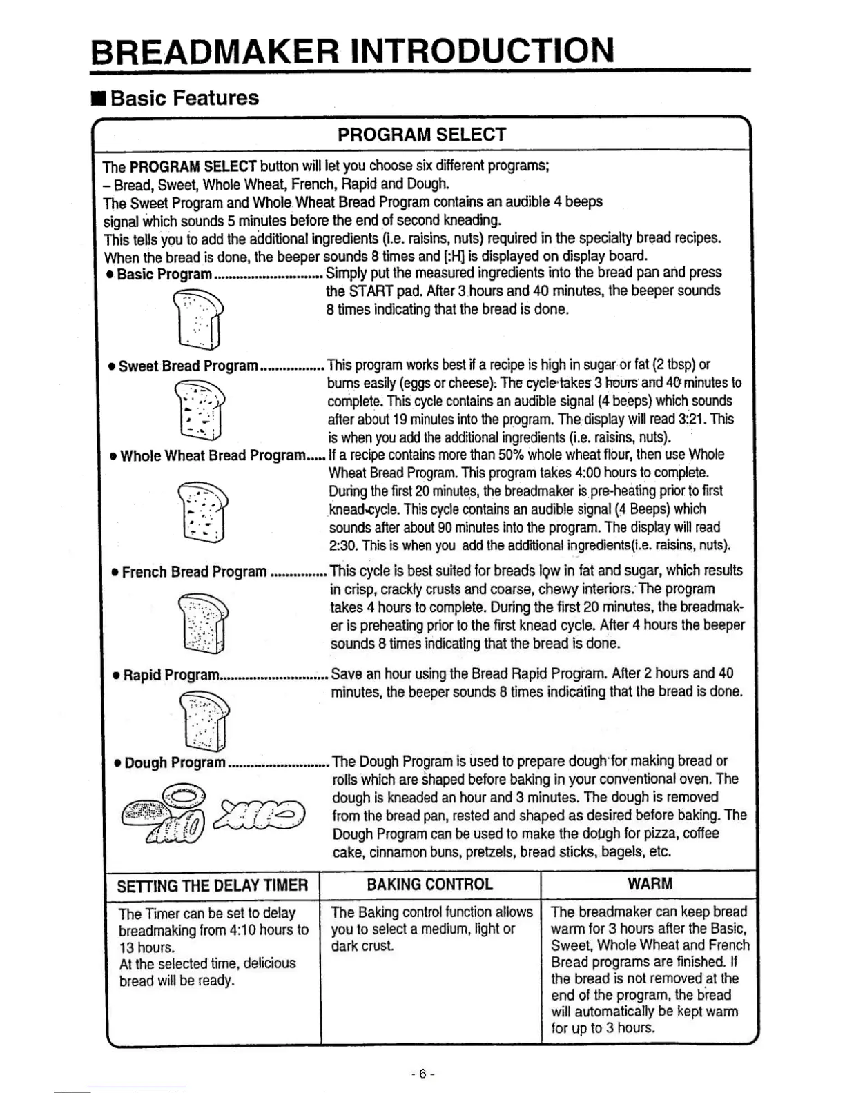 Toastmaster 1196 - Breadmaker Introduction; Basic Features