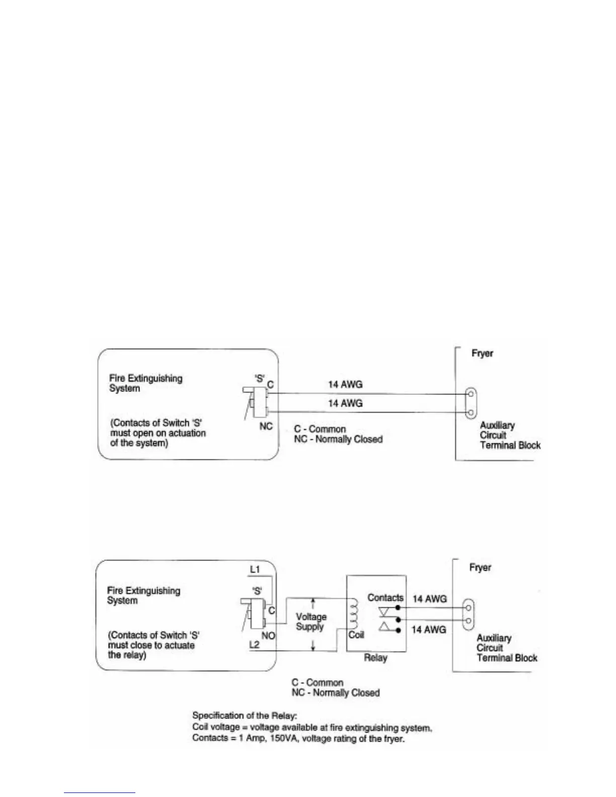 (b.) Follow Figure 2-3 if Switch ‘S’ is rated at lower voltage than the voltage of the fryer, or if voltage