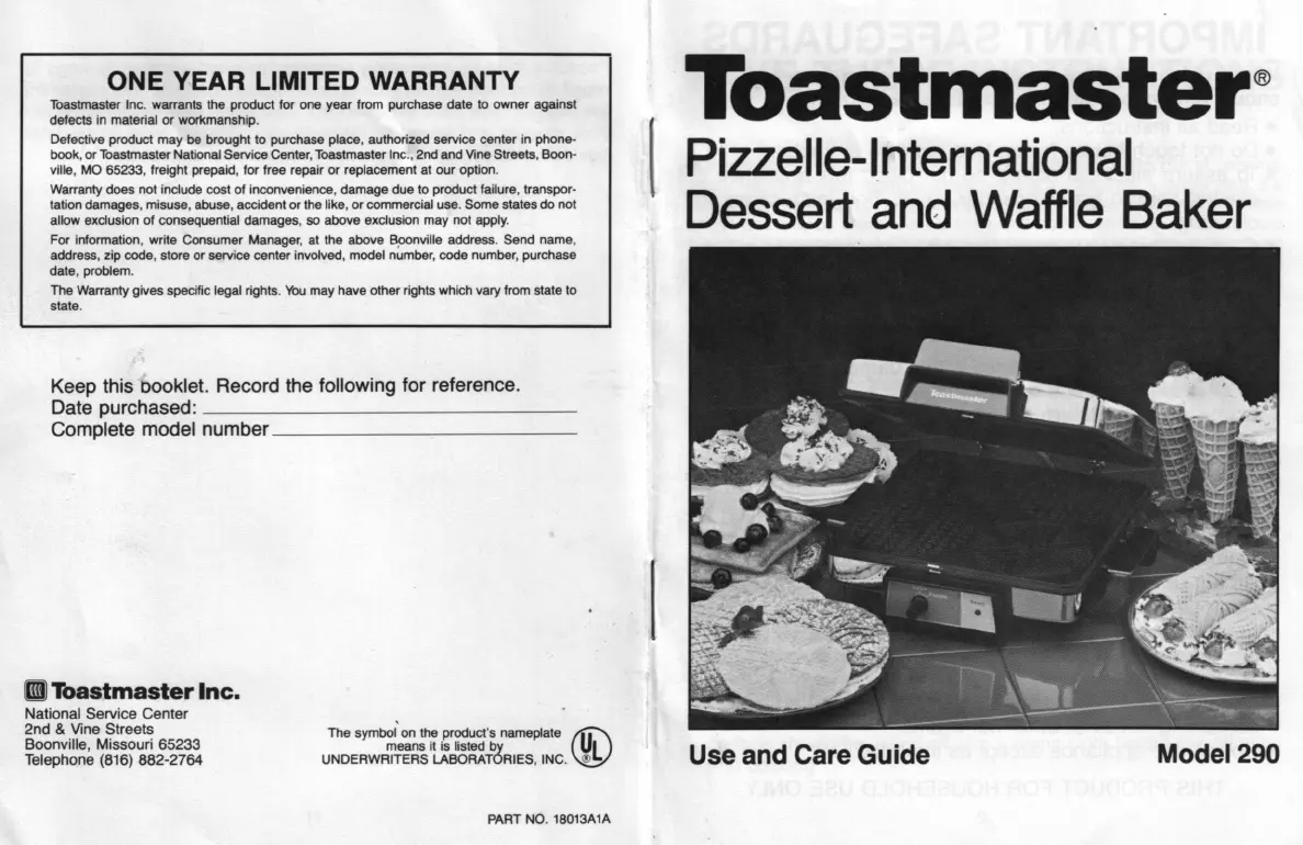 Toastmaster Inc. warrants the product for one year from purchase date to owner against