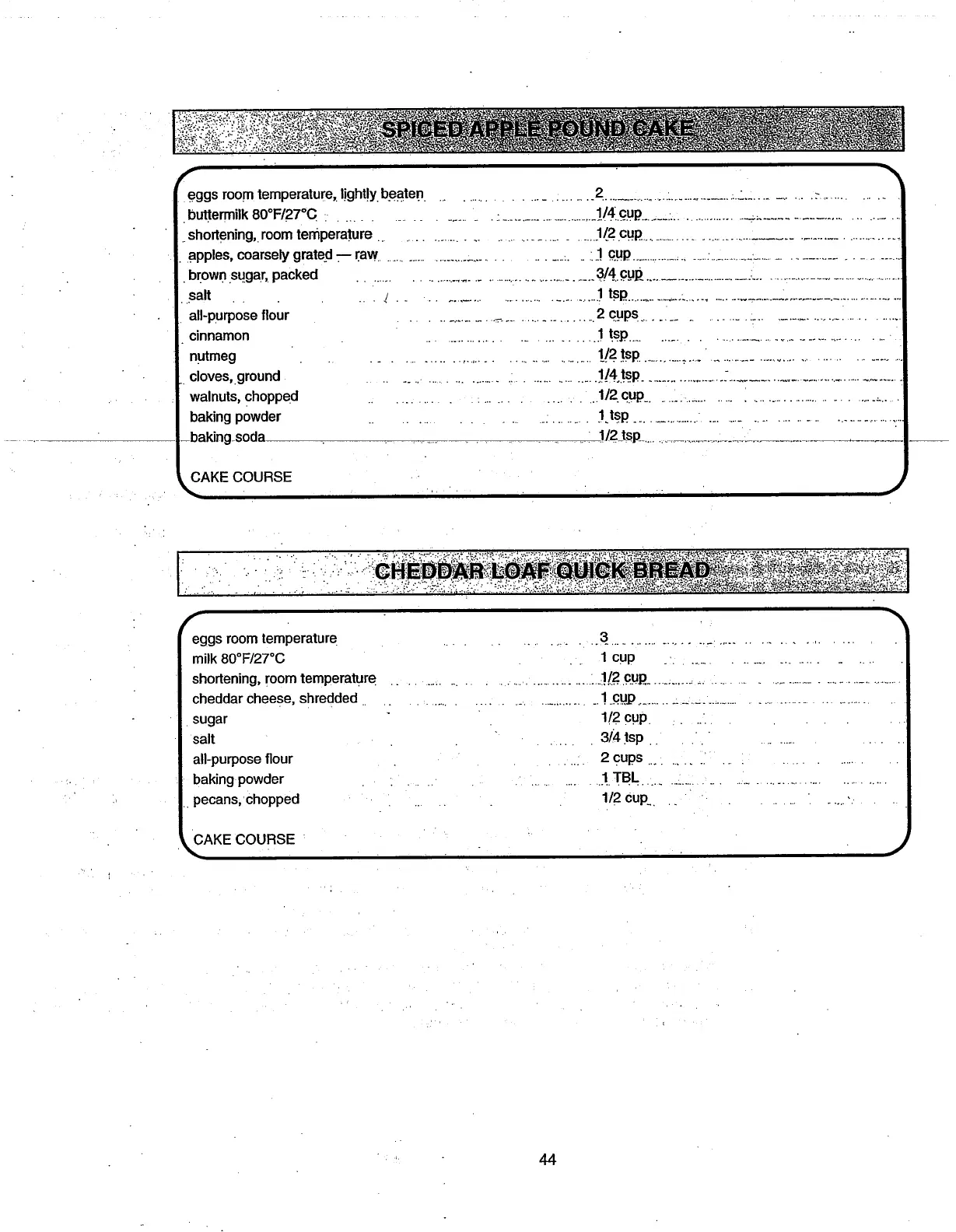 Toastmaster BREAD BOX 1142 - Spiced Apple Pound Cake; Cheddar Loaf Quick Bread