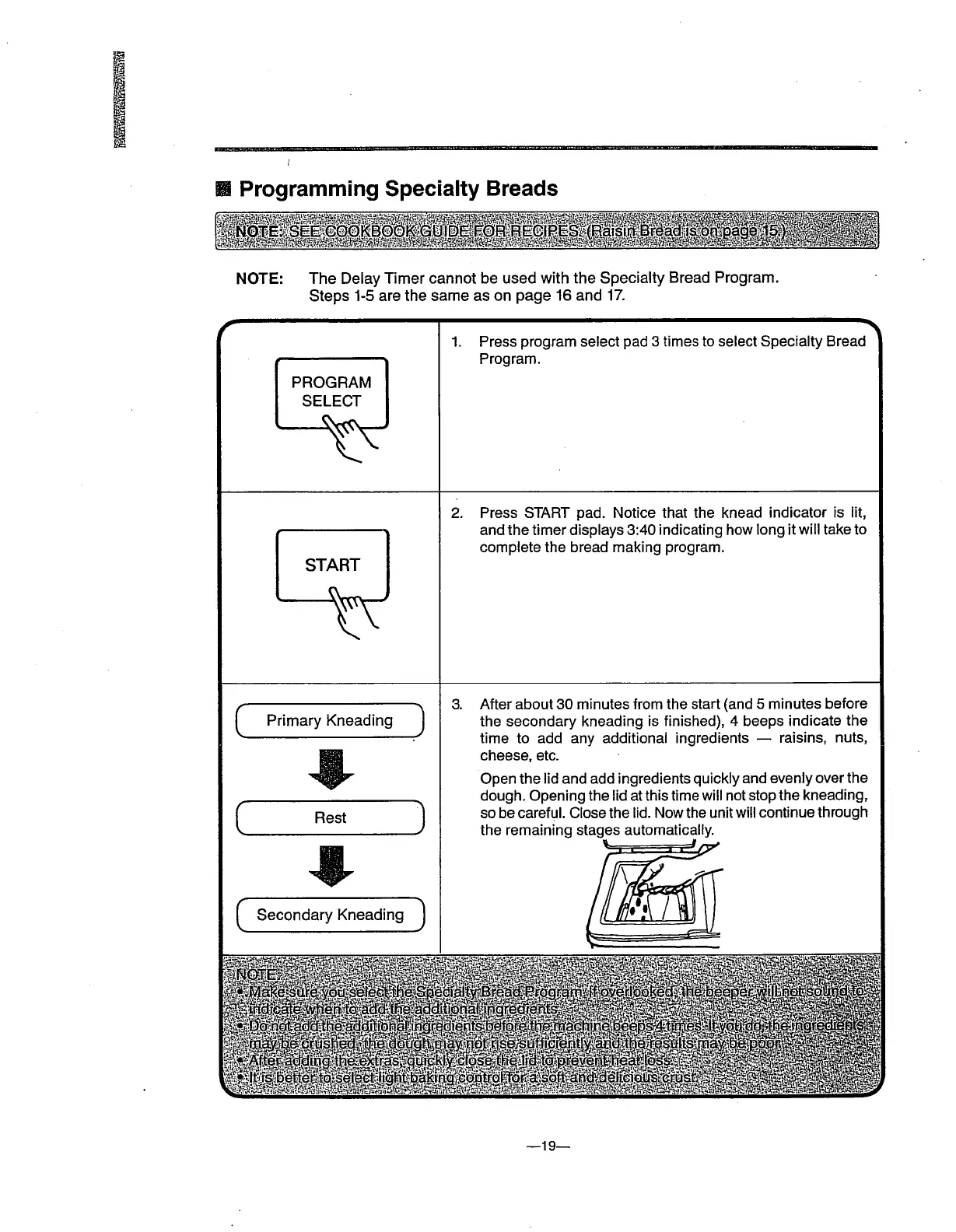 Toastmaster Bread Box 1150 - Programming Specialty Breads; Adding Ingredients During Specialty Programs