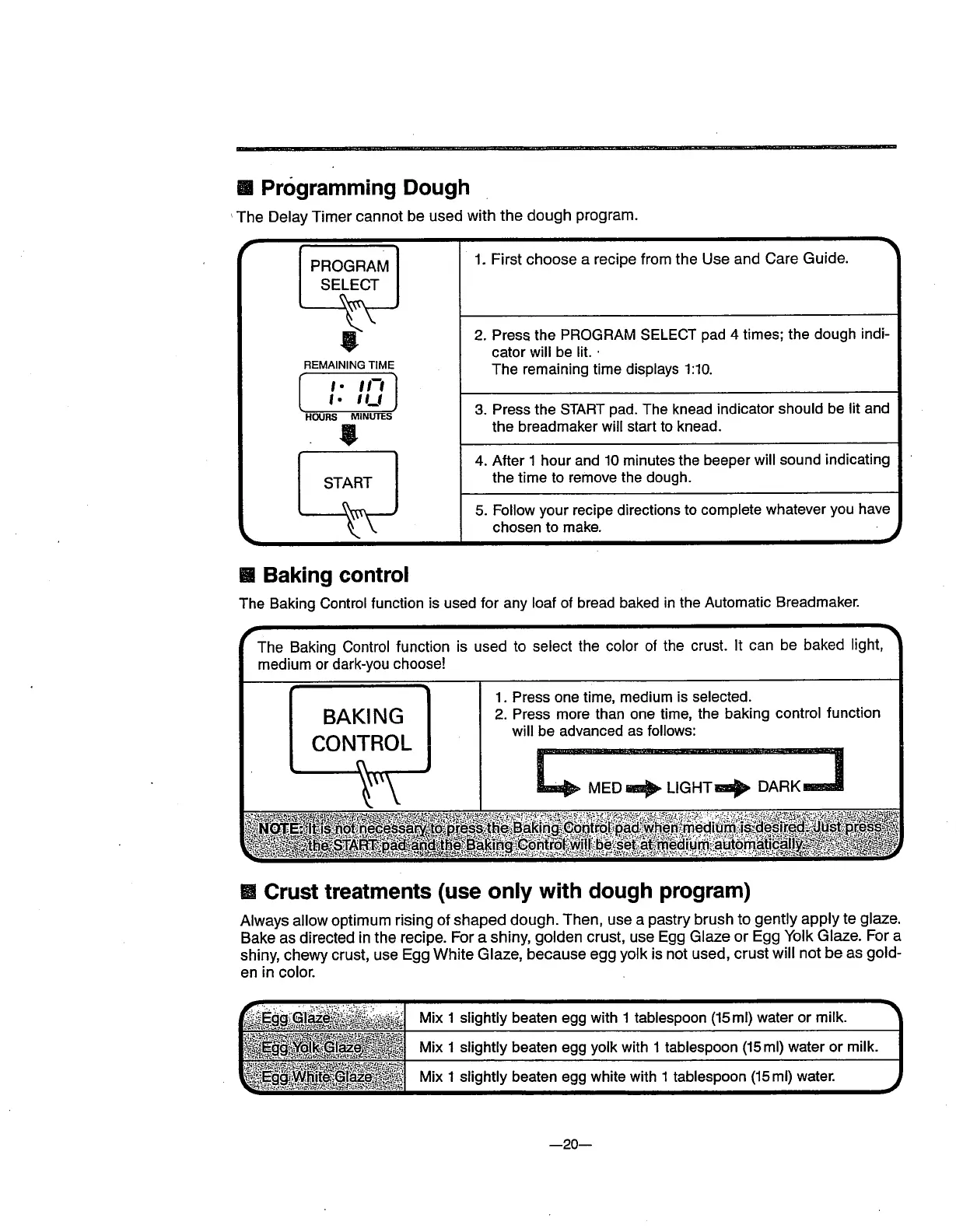 Toastmaster Bread Box 1150 - Dough Program and Baking Control; Dough Program Steps and Crust Selection; Crust Treatments; Applying Dough Glazes