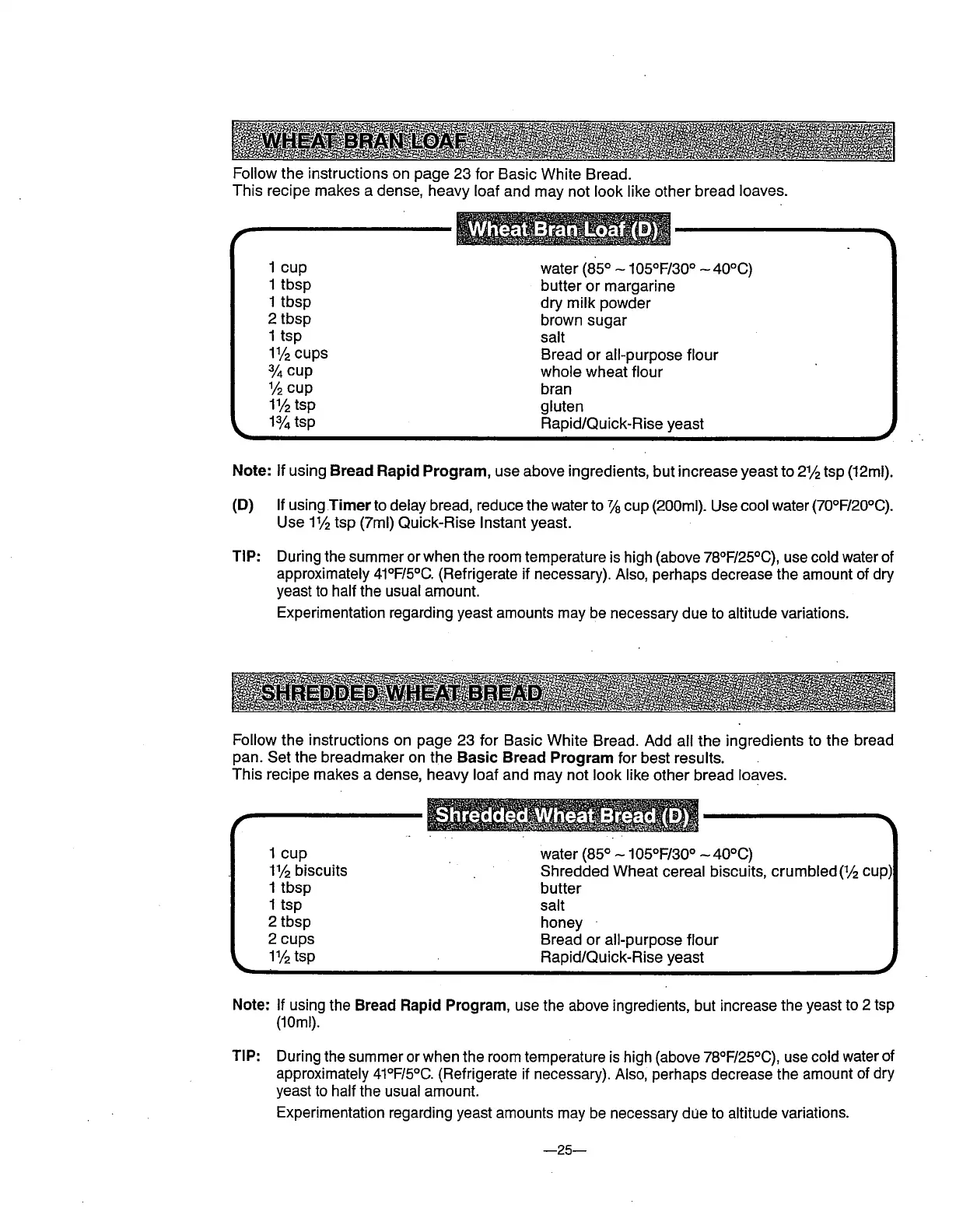 Toastmaster Bread Box 1150 - Wheat Bran Loaf Recipe; Ingredients and Method for Wheat Bran Loaf; Shredded Wheat Bread Recipe; Ingredients and Method for Shredded Wheat Bread