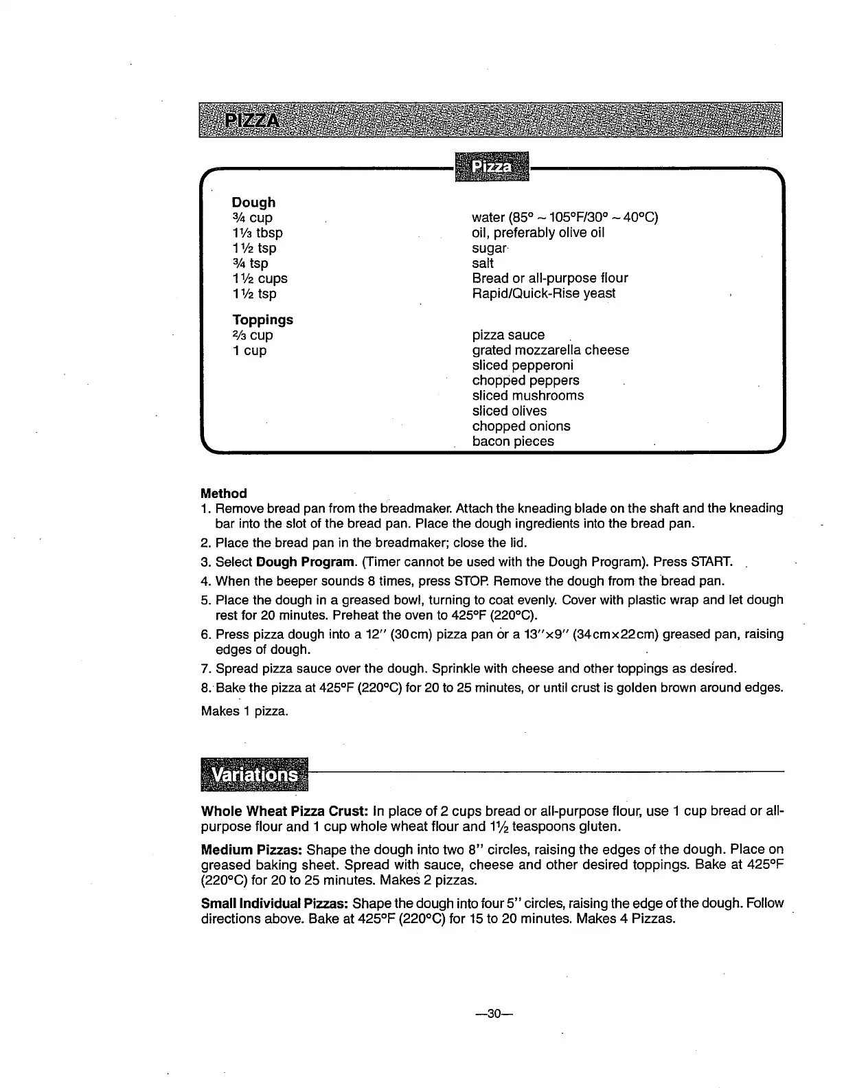 Toastmaster Bread Box 1150 - Pizza Recipe; Pizza Dough, Toppings, and Baking