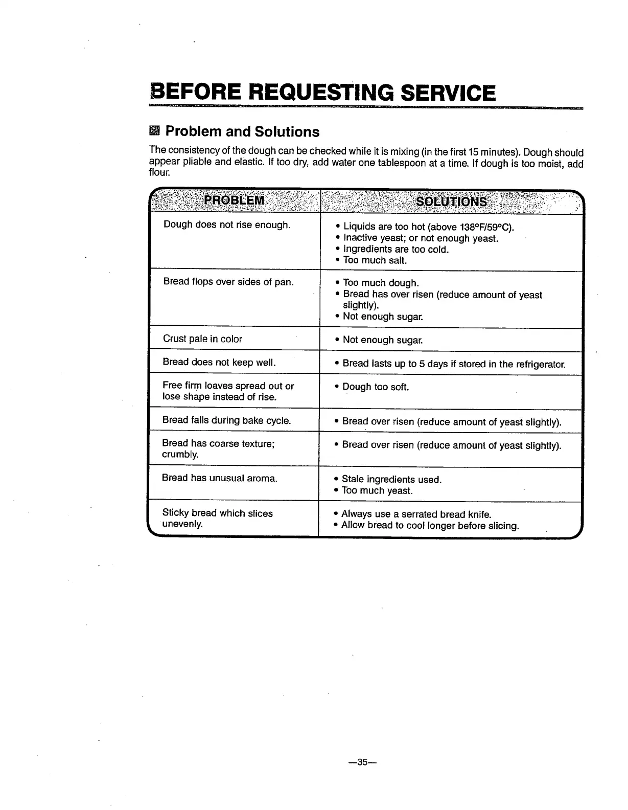 Toastmaster Bread Box 1150 - Troubleshooting and Solutions; Common Dough and Bread Problems