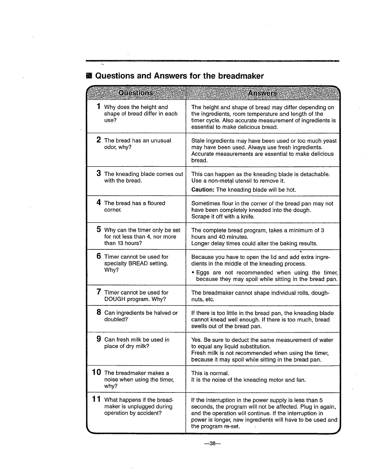 Toastmaster Bread Box 1150 - Questions and Answers; Breadmaker Operation FAQs