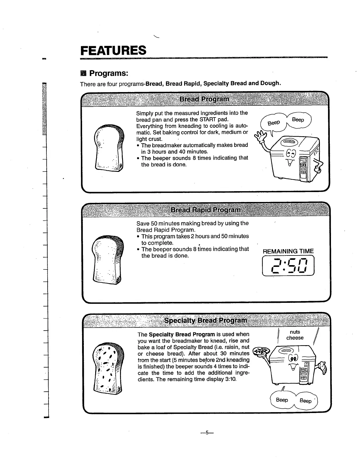 Toastmaster Bread Box 1150 - Breadmaker Features; Overview of Bread Programs
