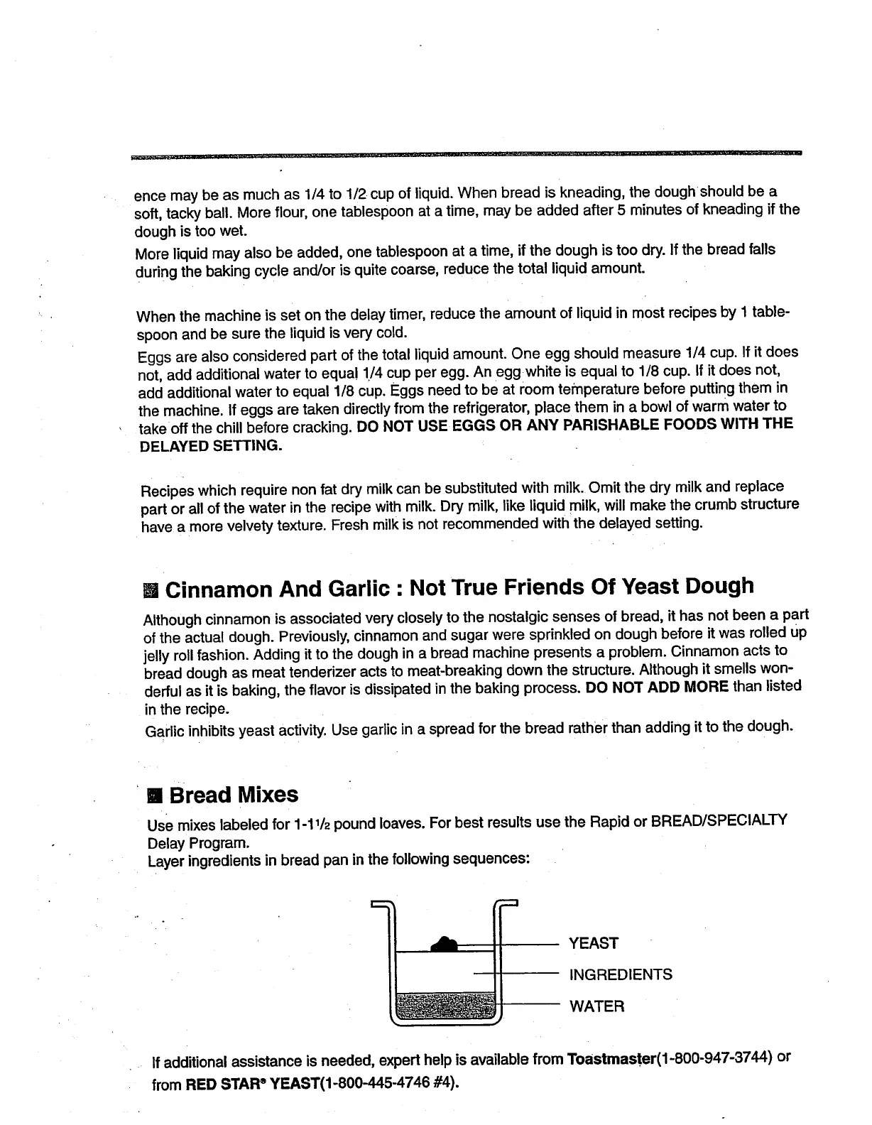 If additional assistance is needed, expert help is available from Toastmaster(I-800-947-3744) or