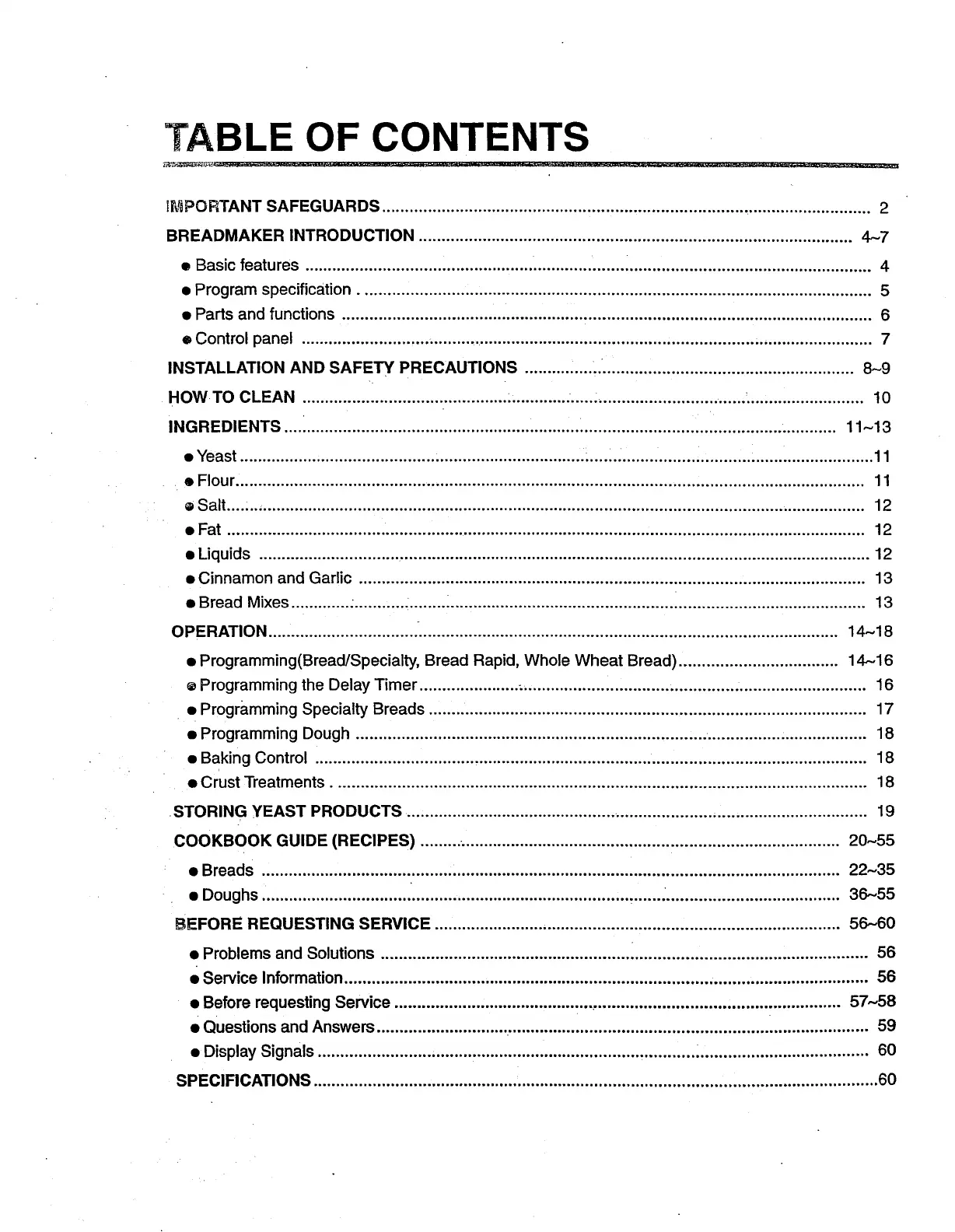 • Programming(Bread/Specialty, Bread Rapid, Whole Wheat Bread) ................................... 14...16