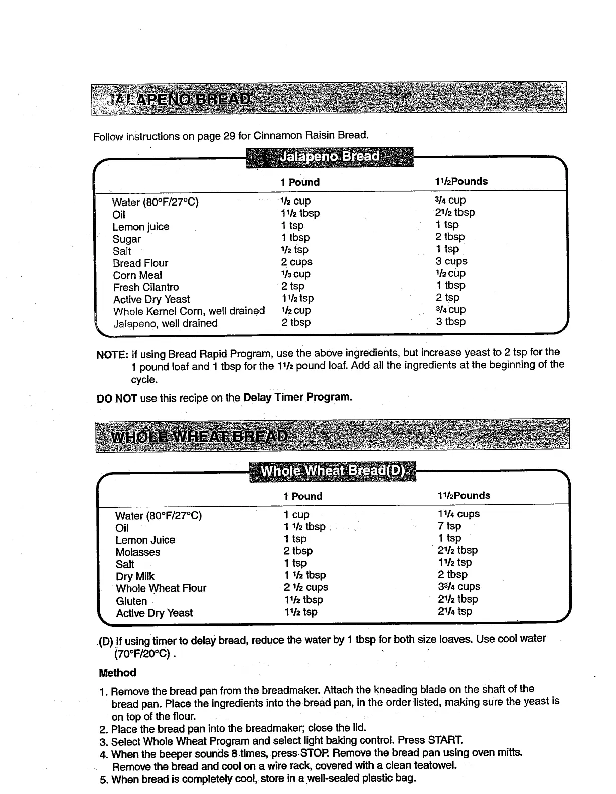 .(D) .If using timer to delay bread, reduce the water by I tbsp for both size