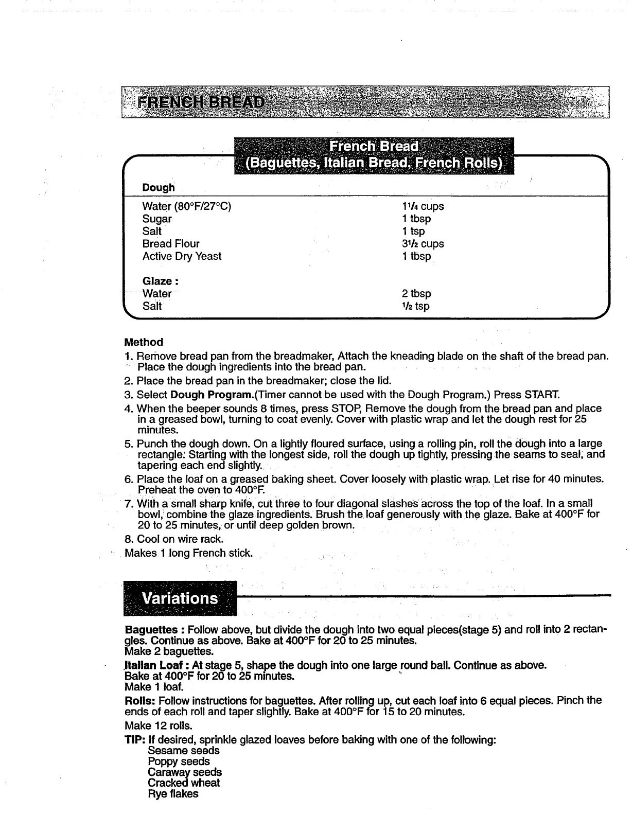 TIP." If desired, sprinkle glazed loaves before baking with one of the following: