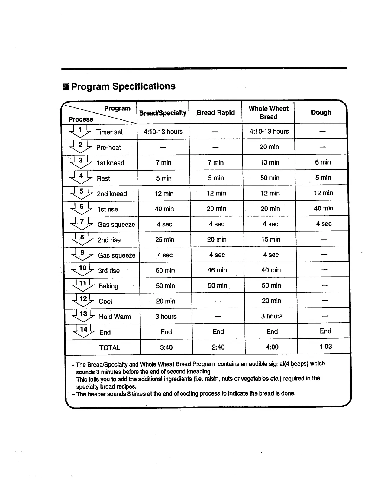 - The Bread/Specialty and Whole Wheat Bread Program containsan audible signal(4 beeps) which