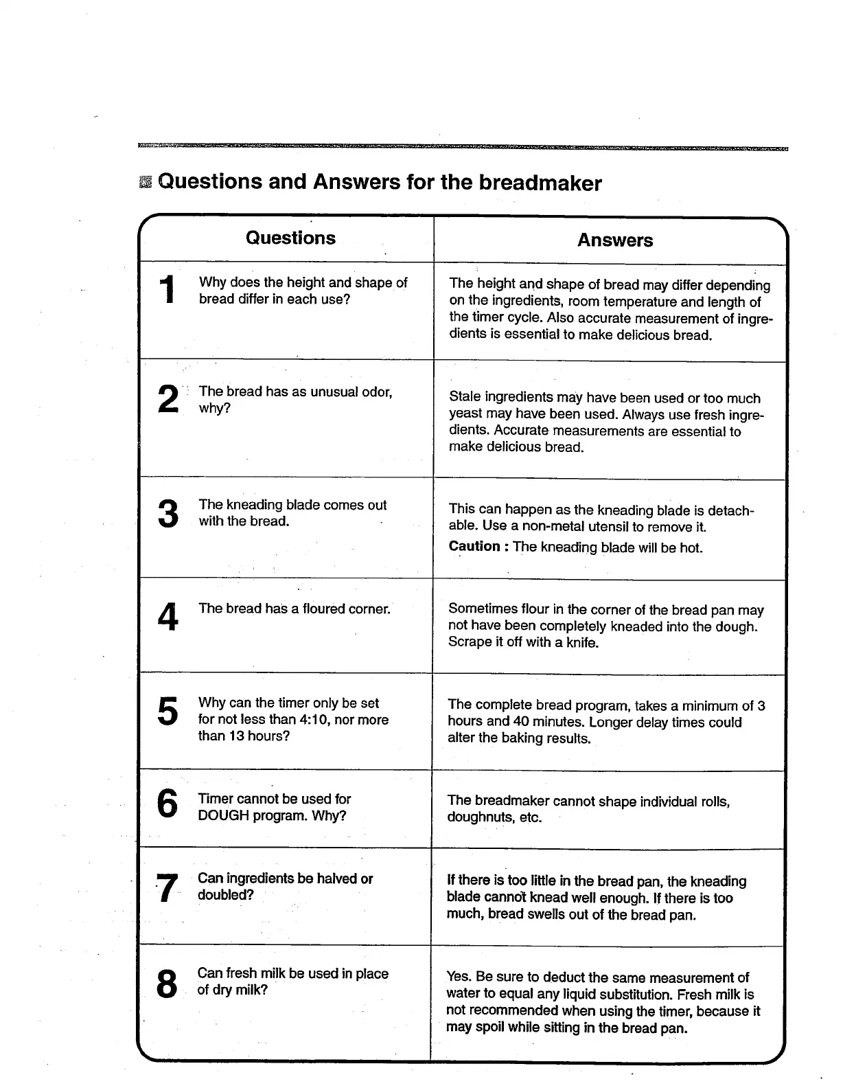Questions and Answers for the breadmaker