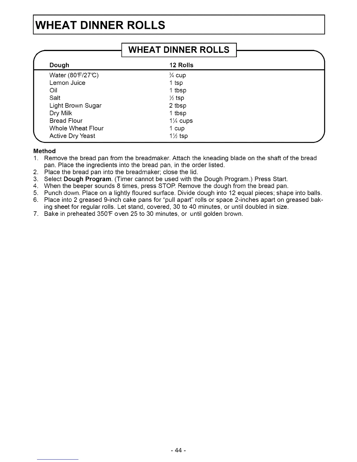 3. Select Dough Program. (Timer cannot be used with the Dough Program.) Press Start.