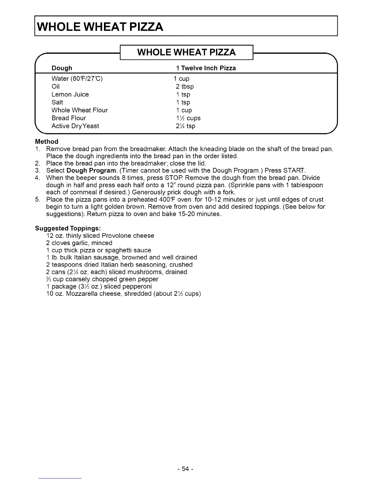 WHOLE WHEAT PIZZA