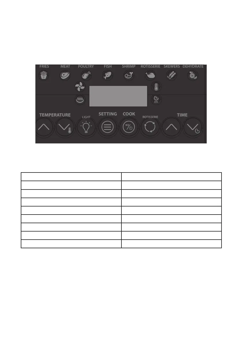 Press “TEMP” UP or DOWN button to set desired cooking temperature. 10 °F will be