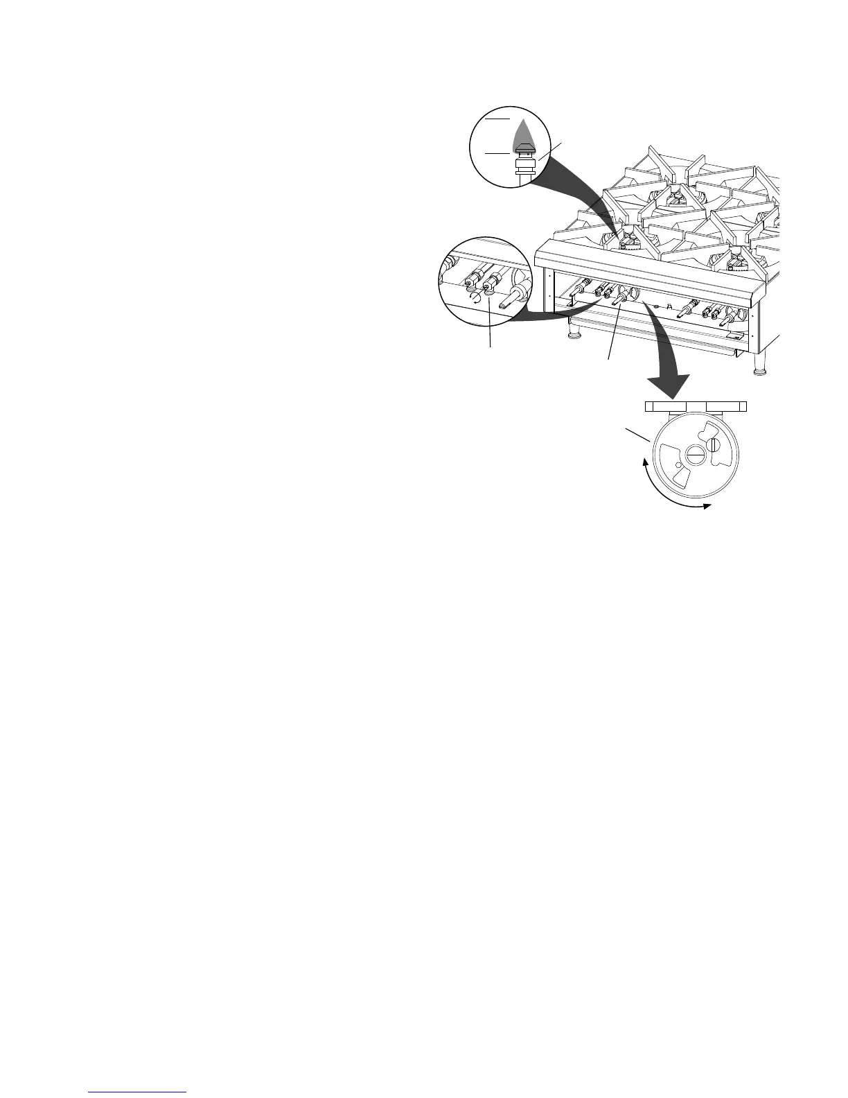 After the pilot is once lit and adjusted, the burners will ignite automatically by turning the control knob to any