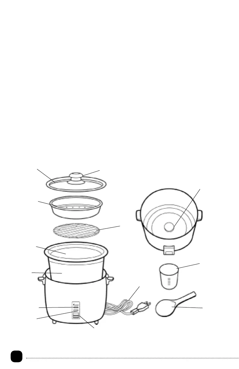 ◆ Wash Inner Pot, Wire Cooking Rack, Glass Lid, Rice Measuring